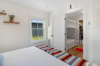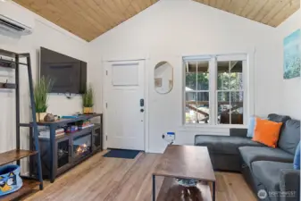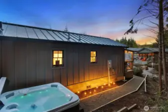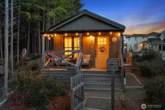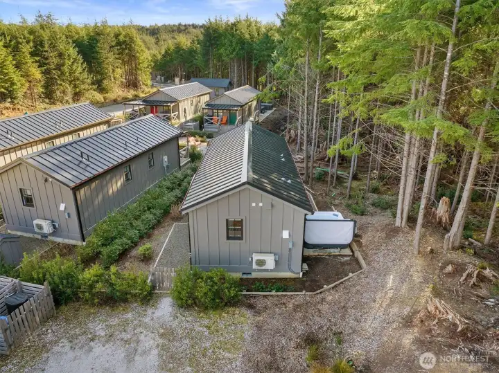 Welcome to Hammerbarn, a fully furnished, turn-key coastal retreat located in Seabrook’s desirable Fernwood Trailside Cabins neighborhood. Situated on a peaceful corner lot surrounded by wooded trails and just a short walk to the Sunrise Pool, this home offers the perfect blend of personal getaway and strong vacation rental opportunity. Inside, the bright and inviting open-concept living space features vaulted tongue-and-groove ceilings, an electric fireplace, Smart TV, and high-speed Wi-Fi—ideal for relaxing after a day at the beach or exploring the nearby trails. The well-equipped kitchen is designed for extended stays, while the layout comfortably sleeps guests with a king bedroom and built-in hallway bunk beds. Step outside to enjoy the covered front porch year-round or unwind in the private hot tub. The outdoor space is perfect for entertaining with a covered patio and peaceful setting next to a woodland preserve. Built in 2022 with a durable metal roof and modern finishes throughout, this home is sold fully furnished and is already established as a successful nightly rental—making it a true turn-key investment or personal coastal escape. Enjoy easy access to Meadowview Park for sunset views, the nearby trail network just steps from the home, and all the amenities Seabrook has to offer.