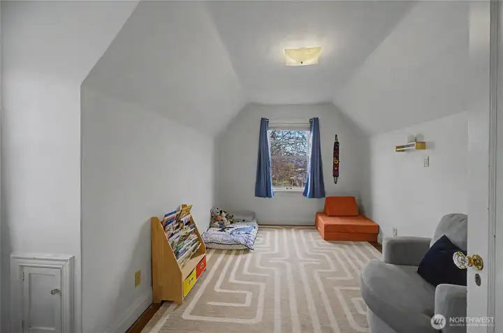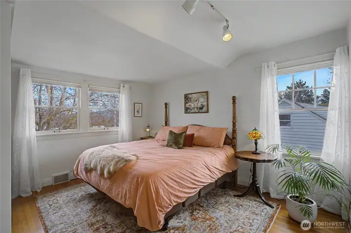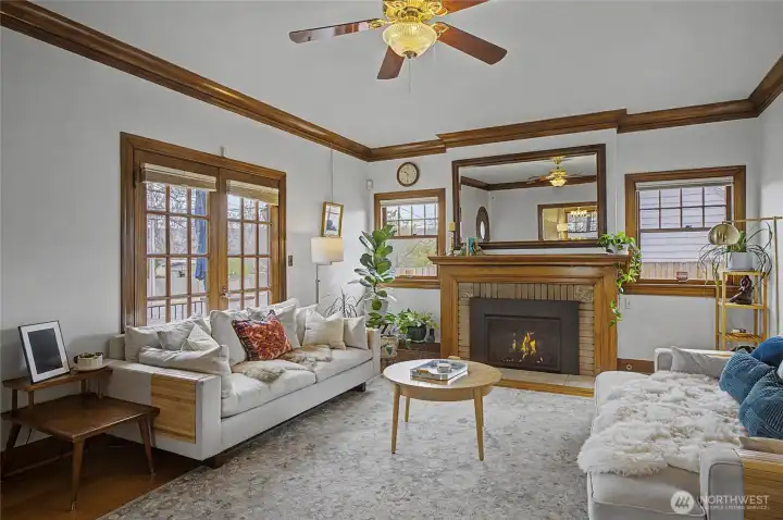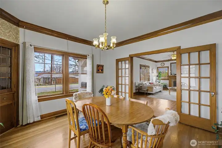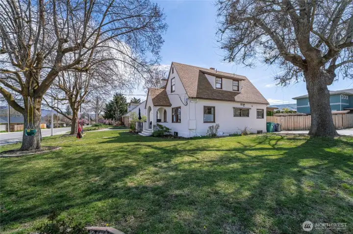 Lovely 1926 Tudor-Style Home showcasing rich architectural character and timeless charm. Original woodwork, 9-foot ceilings, and elegant crown molding set the tone throughout. The living room features beautiful French doors, hardwood flooring, fireplace with new gas insert. Dining room with classic built-ins. The cozy, vintage kitchen includes an eating nook ideal for casual dining, a play area, or flexible workspace. This home offers 5 bedrooms, 3 baths with an extra room to use as an office or bedroom. Stunning vintage tiled bathrooms add distinctive period appeal. Spacious, insulated laundry/mudroom provides everyday convenience with slider to outdoor space. The large, fenced backyard extends your living space with a patio, pergola with mature grape vines, raspberries, raised garden beds, pad wired for hot tub, in-ground sprinkler system and two-car detached garage. The newly finished, income-producing private basement has a separate entrance - ideal for rental income or extended living. Conveniently located near the hospital, schools, and recreation. Potential to add ADU’s to the property. Listing pre-inspection available.