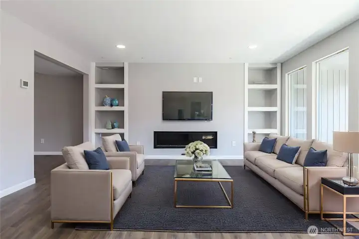 Recent renovation with everything new. Great central location. Upgraded finishes with slab countertops, undermount sinks, and tiled primary bathroom. Modern gas fireplaces in living room and primary bedroom. 2 covered balconies plus a patio to enjoy the outside. 2 car attached garage. New furnace and A/C unit. New stainless appliances including 36 inch gas cooktop. Office nook and large walk in closet in the primary bedroom. Community clubhouse and outdoor swimming pool. All ages community. Listing agent has an ownership interest.