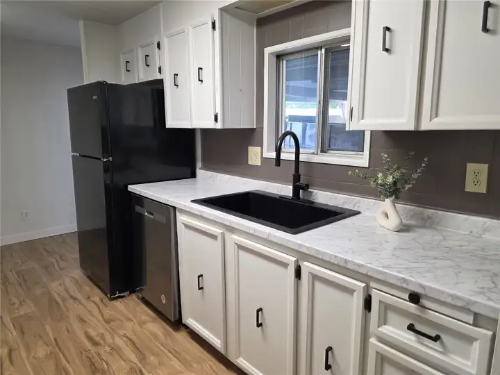 UPDATED! MODERN LOOK, READY TO MOVE-IN, 3 bedroom, 2 bath, located in quite 55+ Western Plaza Community Mobile Home Park. New Exterior and Interior Paint, New Laminate Floor (water proof) Kitchen update with Cabinet Painted, New Countertop, New Sink, New Refrigerator, Gas Stove and Dishwasher. New Gas Furnace just installed, Living room with small cozy Gas Woodstove. 2 Car Carport with Storage Shop, Easy to Freeway, Close to Shopping Center and all other services.