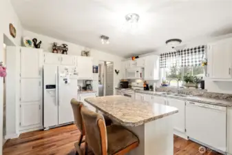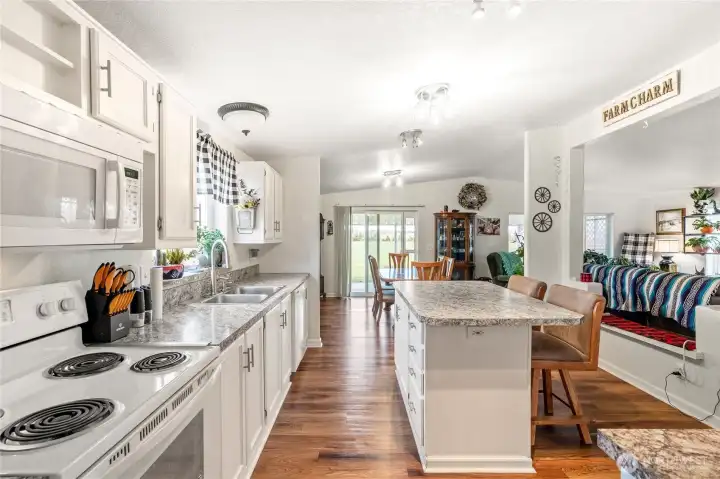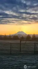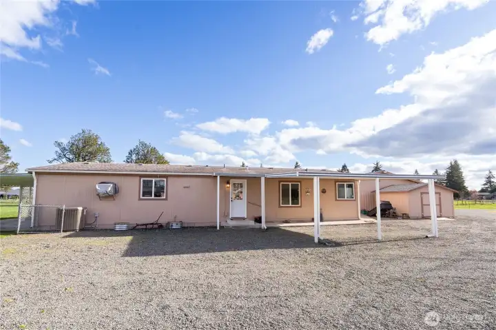 Welcome home to breathtaking views of Mount Rainier! This gated, level 5-acre property offers a rare opportunity with two homes and two shops, providing flexibility for multi-generational living or rental income. Home #1 (1,512 sq ft) features 2 bedrooms plus an office, 1.75 bathrooms, and a bright open-concept design that’s perfect for comfortable everyday living and entertaining. Home #2 (1,120 sq ft) offers 3 bedrooms and 1.75 bathrooms, giving ample space for guests, extended living, or additional income potential. Both homes are equipped with efficient heat pumps, ensuring year-round comfort. Both houses feature covered patio areas, perfect for relaxing or entertaining, along with multiple sheds that provide additional storage and versatility. The property also includes two large shops, each with 2-car garage space, ideal for hobbies, storage, or workspace needs. With its level acreage, fenced pasture, gated entry, and incredible Mount Rainier views, this property combines privacy, functionality, and natural beauty in one exceptional setting.