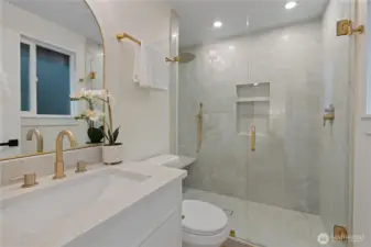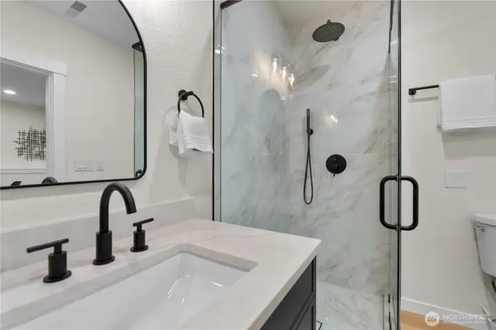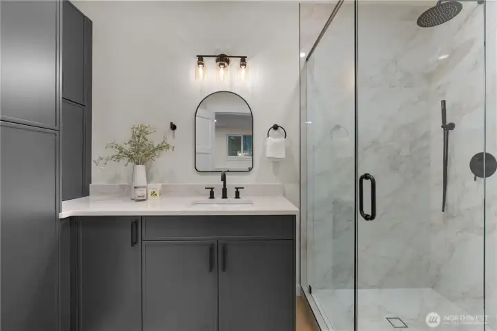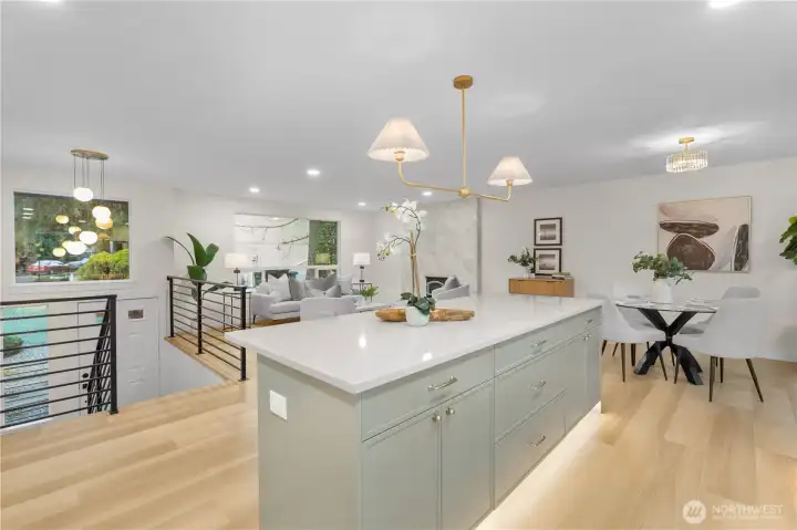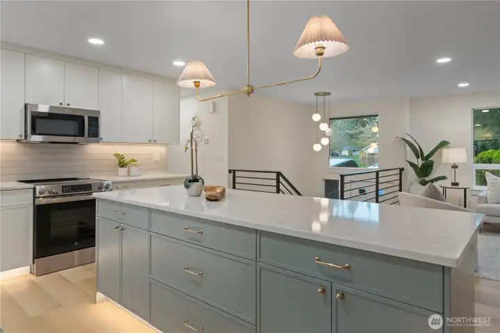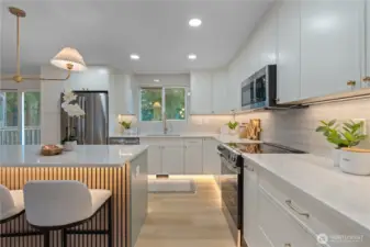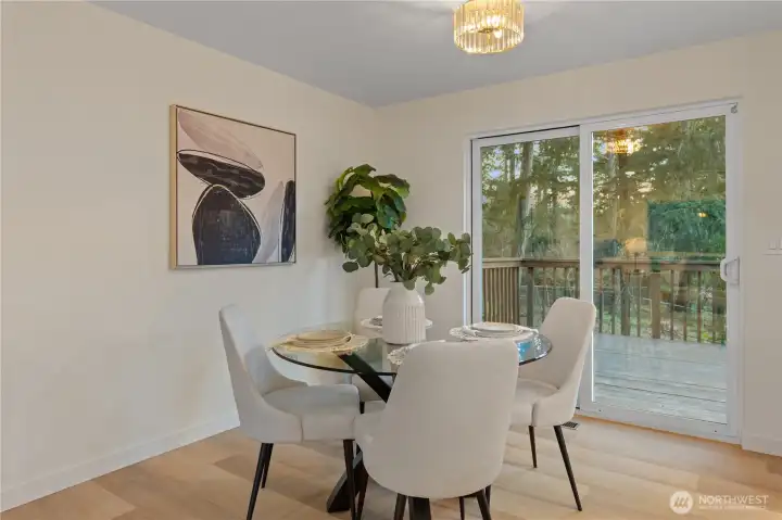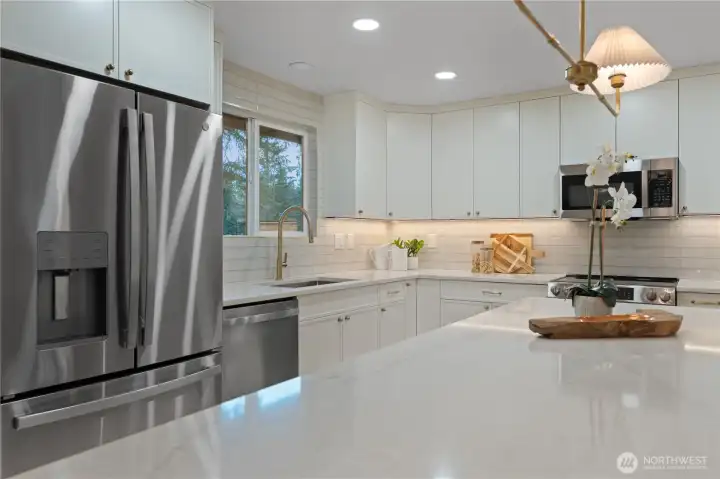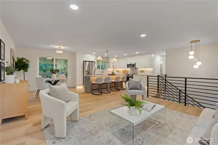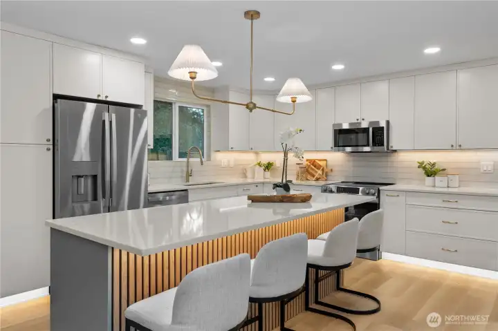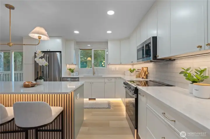 Stunning fully remodeled residence offering refined, move-in ready living on a spacious lot in Lacey. Thoughtfully reimagined with a bright, open concept design, this home showcases wide plank LVP flooring, fresh designer paint, and abundant natural light throughout. The chef-inspired kitchen features quartz slab countertops, new cabinetry with under cabinet lighting, and brand new stainless steel appliances. Recent upgrades including a new roof and furnace provide lasting quality and peace of mind. Bathrooms have been elegantly updated with modern finishes, creating a cohesive, high-end feel throughout. Step outside to a fully fenced yard with fresh hydroseed and a deck ideal for relaxing or entertaining, with ample space for outdoor enjoyment and future possibilities. Conveniently located with easy access to I-5, JBLM, and a wide range of shopping, dining, and recreational amenities, and served by the well-regarded North Thurston School District, this home offers a rare combination of style, comfort, and everyday convenience.
