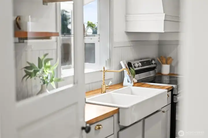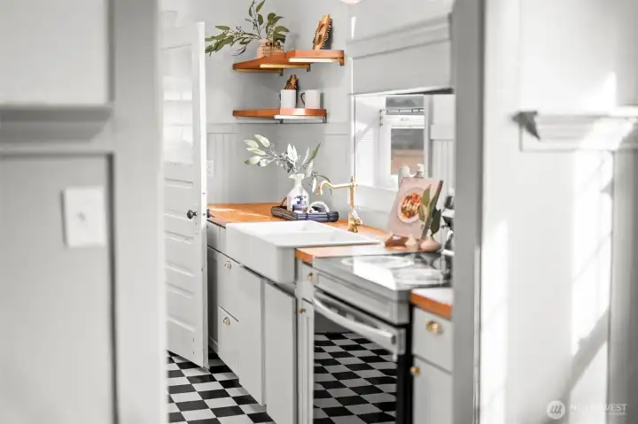 Welcome to this charming Tacoma Craftsman, where timeless character meets thoughtful modern updates. This 3-bedroom, 1.5-bath home immediately captivates with its inviting curb appeal, classic covered front porch, and distinctive architectural details. Inside, you’ll find beautiful original fir flooring, abundant natural light, and a warm, welcoming feel throughout. The updated kitchen is both stylish and functional, featuring stainless steel appliances, butcher block countertops, open shelving, and a farmhouse sink—all designed with a nod to the home’s historic charm. Step outside to your private backyard oasis, fully fenced and ready for enjoyment. Garden enthusiasts will love the raised garden beds, while the spacious yard offers plenty of room to relax, entertain, or play. Additional highlights include a concrete parking pad off the rear alley and a brand-new oversized detached 2-car garage with shop space—perfect for hobbies, storage, or extra workspace.