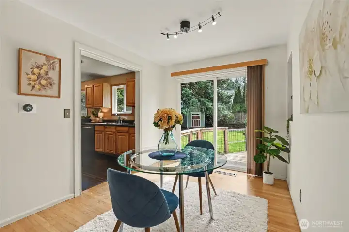 Stylish, spacious, and full of charm, this beautifully maintained 3 bedroom, 2 bath gem offers the perfect blend of comfortable living & effortless indoor-outdoor enjoyment, ideally located just one block from the NEW LIGHT RAIL Station. The open-concept seamlessly connects the kitchen, dining, & living spaces, creating a warm & inviting flow ideal for both everyday living & entertaining. Step outside to your own private retreat featuring a fully-fenced yard, sunny SOUTHERN EXPOSURE & a generously sized deck, perfect for morning coffee, evening gatherings, or simply soaking in the sunsets. The chef's kitchen features Cafe appliances & new floors. Upstairs, a versatile bonus room or third bedroom provides flexibility for guests, a home office, or play space. The lower level provides plenty of space for the home theater or gym. This lot is sited in Phase 3 of Shoreline's MUR45 area. Hold & rent while you get feasibility study done. Thoughtfully designed for connection & ease, every space feels light-filled & welcoming. This home offers exceptional convenience for commuting while still enjoying the comfort of a peaceful neighborhood setting. Welcome Home!