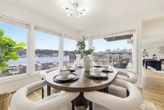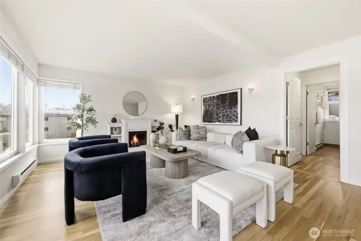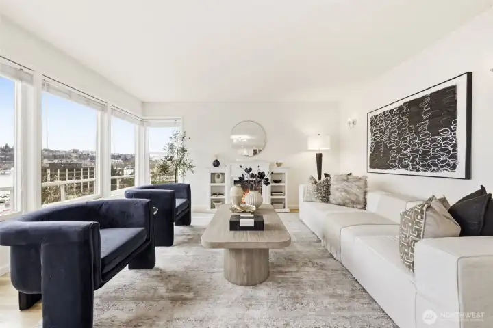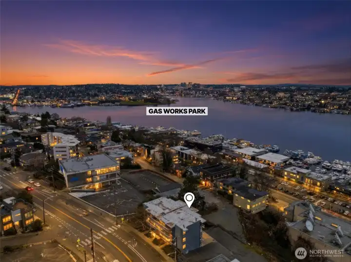 What if your balcony came with front-row seats to Seattle’s most iconic views? Experience elevated city living in this stunning 2-bedroom, 1-bath corner unit offering 1,144 square feet of expansive open-concept design and truly unforgettable views. With breathtaking 270-degree panoramas spanning South Lake Union, the Seattle skyline, the Cascade Mountains and 4th of July fireworks enjoyed right from your private balcony. With city views like this; You’re not just close — you are center stage. The thoughtfully updated kitchen seamlessly connects to the spacious living and dining areas, creating an ideal layout for both everyday living and entertaining. Large windows flood the home with natural light, enhancing the airy feel and maximizing the spectacular outlook from nearly every angle. Both bedrooms are generously sized, offering flexibility for guests, a home office, or additional living space. Additional features include dedicated parking for the unit and a private storage area for added convenience. Ideally located with close proximity to Amazon, Google, Facebook, Fremont, and South Lake Union Park, this home offers exceptional access to major employers, vibrant dining, shopping, and waterfront recreation. Over $22,000 in upgrades, Pre-Inspected & ready to move in. Under Rental Cap!
