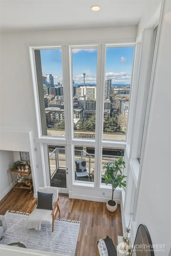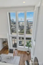 Unobstructed VIEWS! This stunning penthouse condo is sure to impress - get ready for summer gatherings and front row seats to 4th of July fireworks! Welcome to Highmark Condos, where immaculate living meets comfortable luxury and everyday convenience with a 93 Walk Score. Featuring 3 bedrooms + den, and 2 baths, the thoughtfully designed layout balances space, functionality, and comfort for modern living. Step inside and be captivated by a sense of grandeur - soaring vaulted ceilings and an abundance of natural light filling the open layout. Enjoy cozy evenings by the gas fireplace, then gather in the kitchen while taking in the views or step out onto one of three private balconies to savor sweeping vistas of the Seattle skyline, Space Needle, Lake Union, Olympic Mountains, and unforgettable sunsets. Upstairs, you’ll find a large bedroom and an expansive primary suite with views from every angle, a private balcony, a generous walk-in closet and an ensuite bath with both a soaking tub and separate shower. Fresh paint, updated lighting, and new carpet complete this truly move-in home. Experience year-round comfort with a mini-split A/C system, two side-by-side parking spaces, and a storage unit for all your gear. Ideally located just minutes from vibrant Capitol Hill and South Lake Union, with quick access to I-5 Express for an easy commute. Pre-inspected for your convenience, this one-of-a-kind condo is not to be missed!