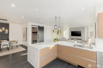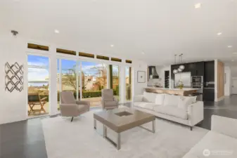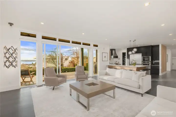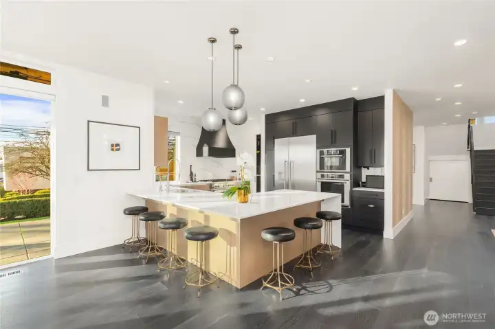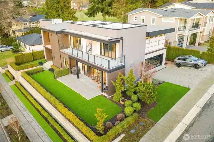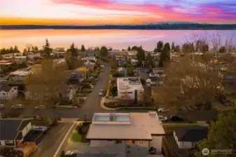 Timeless elegance meets bold design in this contemporary retreat, commanding attention with striking aesthetics and sweeping views. Set in desirable Houghton, just steps from Met Market & Lakeview Elementary. Rich black hardwoods anchor the main level, featuring a sleek chef’s kitchen with moody cabinetry, waterfall quartz island, & Thermador appliance suite with steam oven. Entertain in the expansive great room with linear gas fireplace & high-end audio system that flows to a heated view patio & turf yard. A dining room perfect for hosting, complemented by a guest suite, 3/4 bath, & private office. Upstairs find 3 en-suites including a luxurious primary with heated floors, dual shower, & absolutely giant closet. Access to a large view deck from primary & bonus room. Above it all, the rooftop deck offers stunning views of Lake Washington & Seattle skyline. Oversized 2 car garage wired for EV charging, elevator, hydronic heated floors, backup generator & fully motorized shades elevate everyday living in this exceptional home.