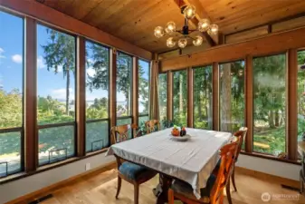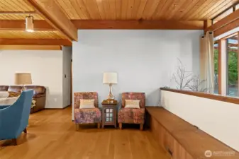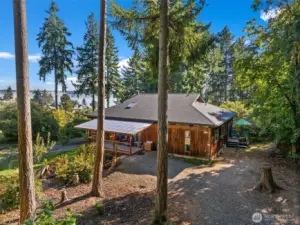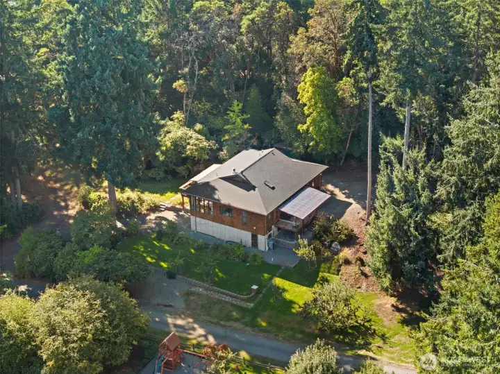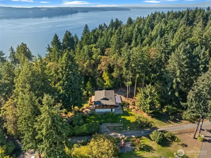 Gorgeous Fox Island home with sweeping views of Mt Rainier, Puget Sound & Chambers Bay Golf Course. This is the first time this Frank Lloyd Wright inspired home has been on the market since building. Entry opens to a gorgeous kitchen/dining area with cedar wood throughout, stainless steel appliances & plenty of storage. Living area opens up to a large deck and perfect area for summer BBQ's with views. Main level features a primary with en-suite, 3 additional bedrooms & full guest bath. Unfinished basement with exterior entrance is plumbed for a bathroom and ready to finish. Large 0.7 acre lot with fruit trees and plenty of parking. Move-in ready with newer 4 bed septic system, electric panel, high-efficiency furnace/heat pump, water heater, and roof. Truly unique home and a must see!