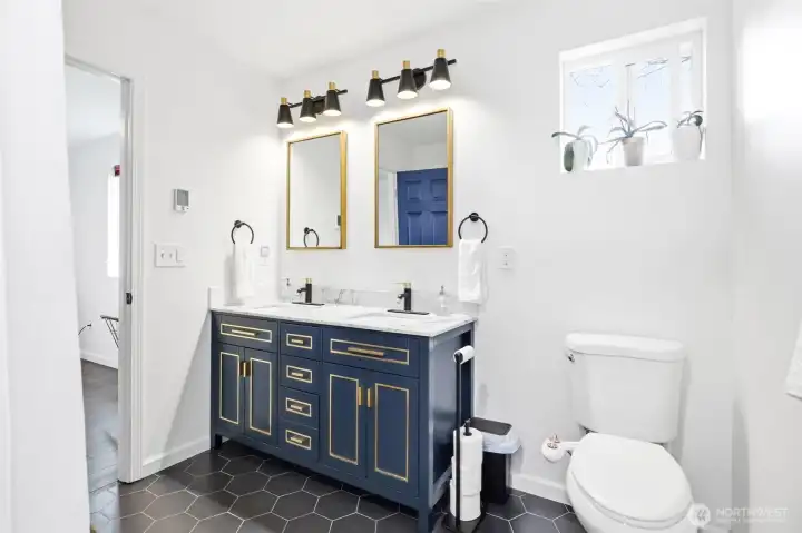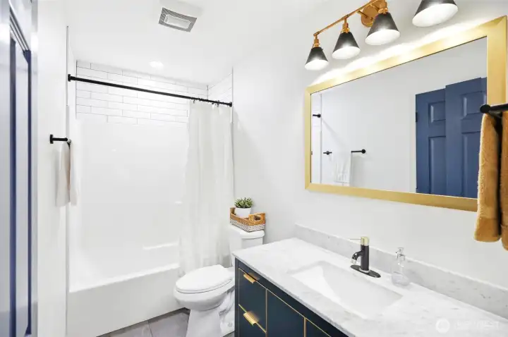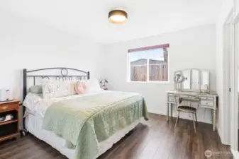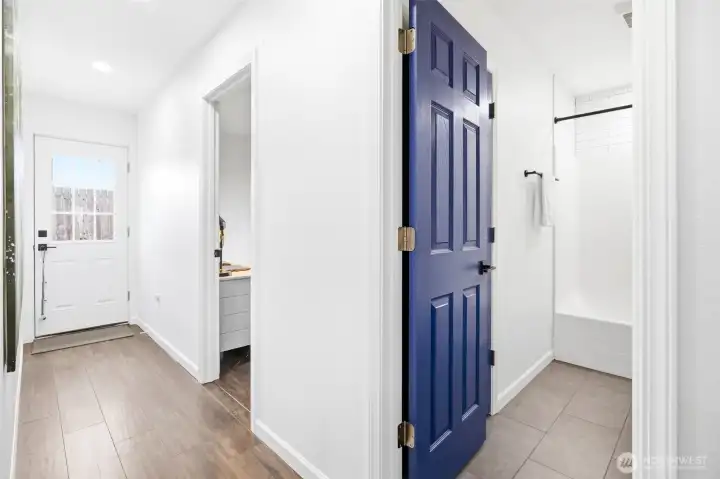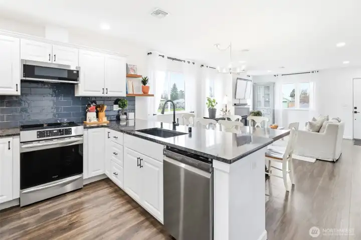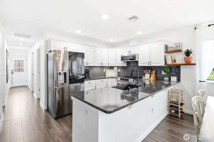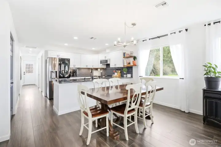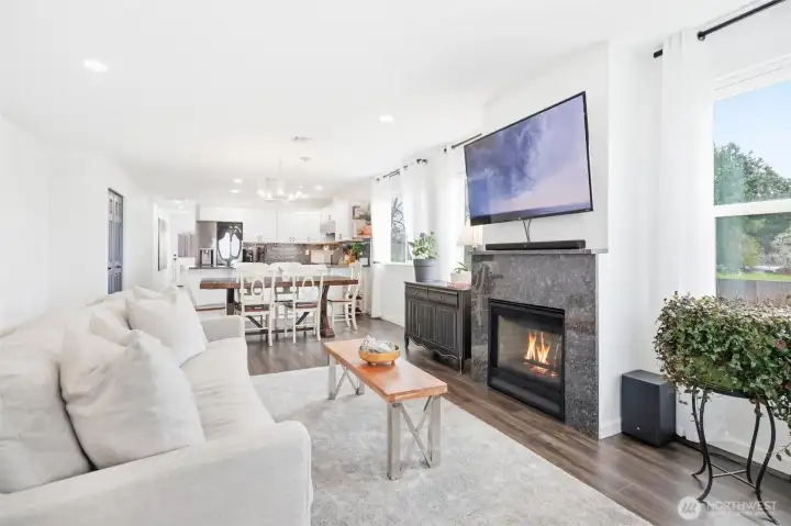 Welcome to this stunning newer construction home ideally situated near Bennington Lake and Mill Creek Sports Complex. The open-concept layout showcases luxury laminate flooring, a cozy gas fireplace, and an abundance of natural light throughout. The chef's kitchen features granite counters and high-end stainless steel appliances, including an induction oven. The spacious primary suite offers a walk-in closet, double vanity, walk-in shower, and heated tile floors. Recent updates include new laundry room cabinetry, landscaping, extended patio with pavers, dining room light, and freshly planted garden. Unwind in your private backyard oasis, complete with a hot tub and entertainer's space. Every detail has been thoughtfully designed for comfortable, stylish living — all that's missing is you!