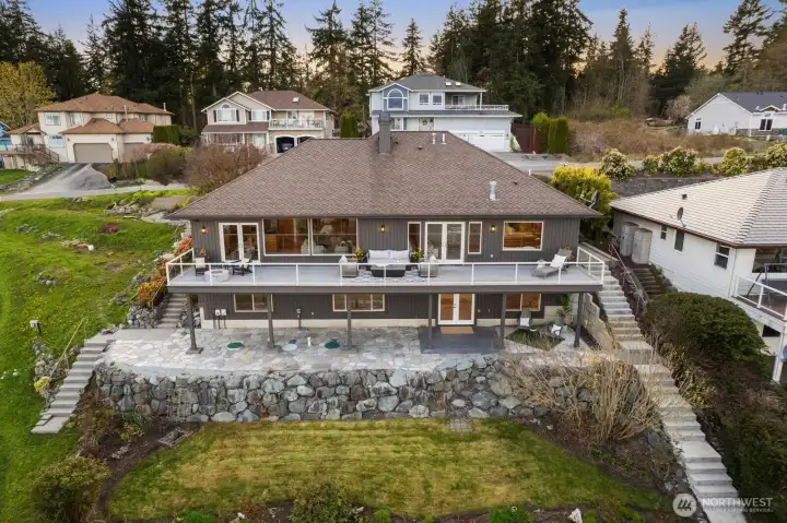 A rare opportunity to own a Camano Island view home that truly lives as beautifully as it looks. Sweeping water and territorial views greet you from the main living spaces, while expansive windows flood the home with natural light and showcase the surrounding landscape. Designed for effortless living and memorable gatherings, the open floor plan flows seamlessly to a full-length upper deck and a lower walk-out patio—perfect for entertaining or simply relaxing and taking in the scenery. Main-level living with no interior stairs on the main floor offers everyday ease, while the daylight lower level provides ideal flexibility for guests, hobbies, or extended living. The primary suite opens directly to the deck, creating a peaceful retreat with a close connection to the outdoors, and features a jetted soaking tub and fireplace for added comfort and luxury. A dedicated office, bonus spaces, and abundant storage add versatility for today’s lifestyle needs. Unwind in your private sauna and experience the quiet, restorative feel of island living—all just a short distance from amenities and an easy drive to the mainland. Recent updates—including fresh interior and exterior paint and new carpet—enhance the home’s clean, comfortable feel and make it ready to enjoy from day one.