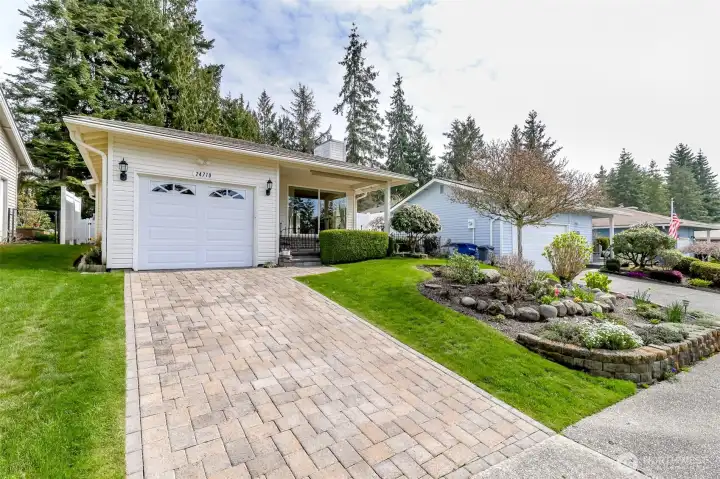 Beautifully remodeled single-level home in the highly desirable Huntington Park 55+ community! This inviting home showcases a completely remodeled kitchen with sleek cabinetry, granite countertops, a 5-burner gas stove, stainless steel appliances, and heated tile floors. Attached garage. The bright living room includes vaulted ceilings, gas fireplace, and abundant natural light with large windows, and french door to lead to your large and peaceful backyard. The home includes a spacious primary bedroom with its own attached bathroom, ceiling fan and large closet. The additional bedroom includes a great built-in desk. Thoughtfully updated bathrooms with marble details—and heated floors. More great lighting with bathroom skylights. Enjoy outdoor living with a patio and awning, a fully fenced, spacious backyard, and a large shed for extra storage convenience. Large covered front patio. Step into peaceful walking trails right outside your gated backyard. Active community complete with a clubhouse, including pool, sauna, hot tub, plus fitness classes and more. This stunning home is in a great location and move-in ready!