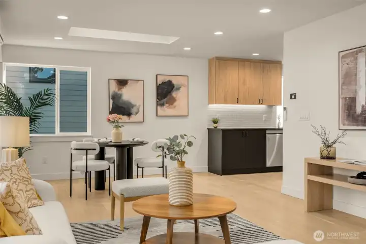 Welcome to Ashwood Place, a boutique three-home community in Seattle’s sought-after Ravenna neighborhood. This beautifully designed new construction home offers a perfect blend of modern style, comfort, and functionality, with elevated finishes and clean, contemporary design throughout. The open-concept main level is filled with natural light and features a designer kitchen with sleek cabinetry, quartz countertops, and premium appliances, seamlessly flowing into the living and dining areas for effortless entertaining. High ceilings and expansive windows enhance the bright, airy feel, while thoughtful layout design maximizes both space and livability. Lower level has two additional bedrooms that provide flexibility for guests, work-from-home needs, or additional living space. The primary suite on the main level serves as a private retreat with a spa-inspired bath and a spacious walk-in closet. Enjoy a fully fenced yard and private outdoor space, ideal for relaxing, pets, or hosting gatherings. Other highlights include an EV ready 1-car garage, quality craftsmanship, energy-efficient systems, and low-maintenance living designed for today’s lifestyle. Ideally located near Ravenna Park, University Village, Green Lake, and neighborhood cafés, with convenient access to the University of Washington, Light Rail, and major commuter routes.