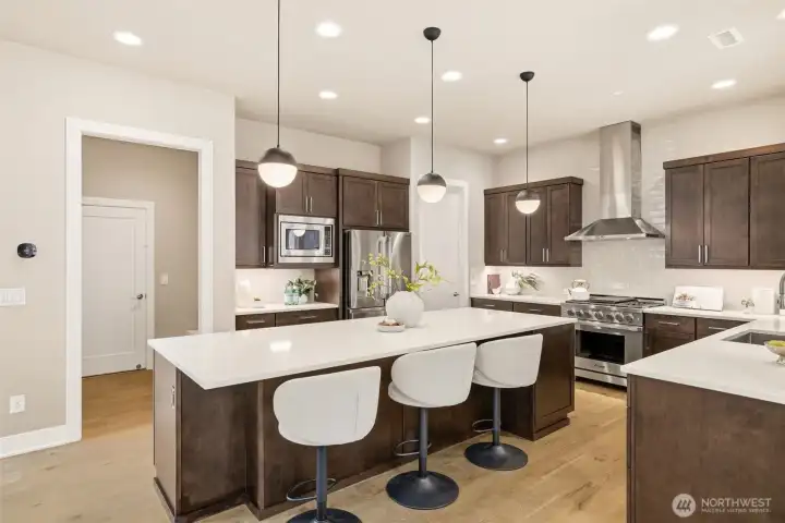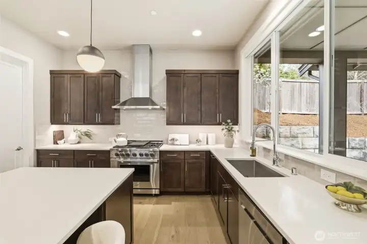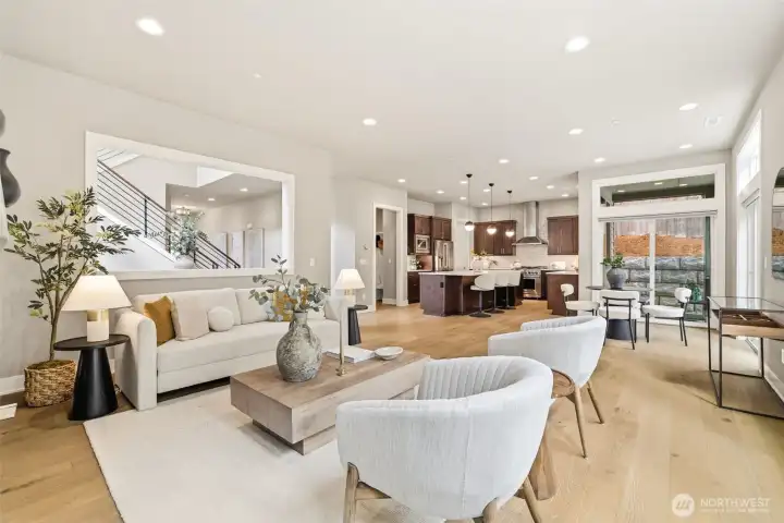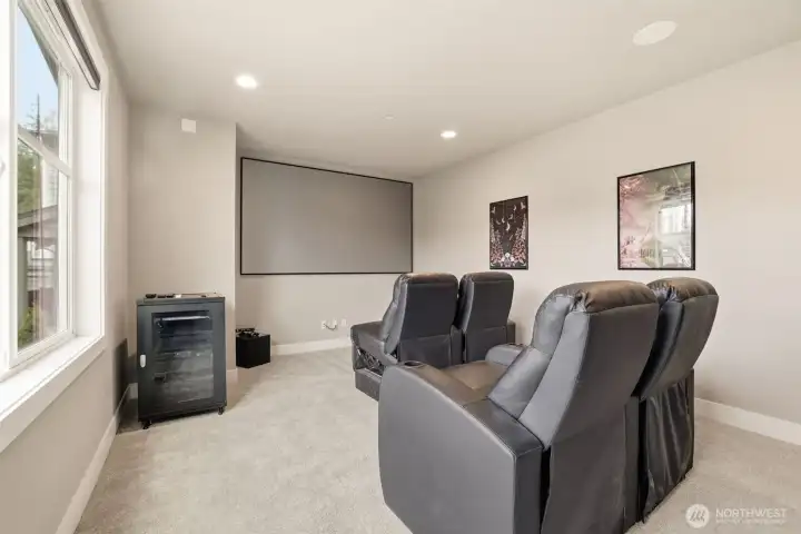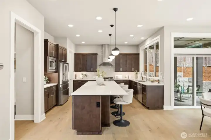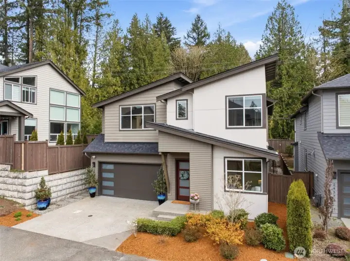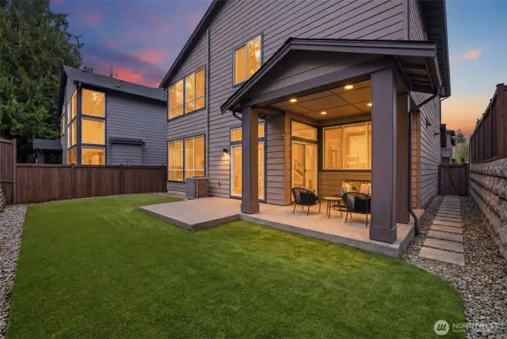 Quality built by Terrene Homes in 2020, this modern Sammamish Plateau residence offers elevated design w/ 10’ ceilings, walls of windows, & seamless indoor/outdoor living. The open-concept layout is filled w/ natural light, highlighted by its ideal west-facing orientation, bringing in some of the best sunlight exposure throughout the day. Main level features a guest suite/den w/ nearby bath + shower - perfect for multi-gen living or private workspace. Chef’s kitchen w/ premium Dacor appliances flows effortlessly into the main living & dining areas, creating a highly functional & inviting space. Upstairs includes a dedicated media room w/ oversized projector screen for true at-home entertainment, along w/ thoughtfully designed spaces including custom closet cabinetry for elevated organization. Enjoy an easy-maintenance yard w/ luxury performance turf, designed for year-round use. Additional upgrades include motorized window treatments, EV charger, A/C, double-pane sound-deadening windows, & an oversized 2-car garage w/ high ceilings, epoxy floors & built-in storage system - all reflecting excellent upkeep throughout. Located in the desirable Sammamish Plateau w/ quick access to major highways, tech hubs, & top-rated Lake WA School District. Pre-inspected. A rare opportunity to own a newer, well-built, light-filled home in a prime location offering strong long-term value.