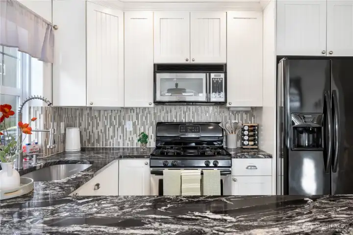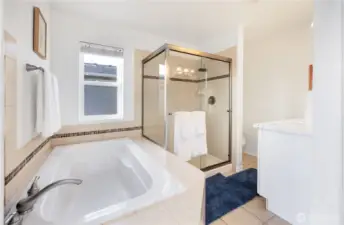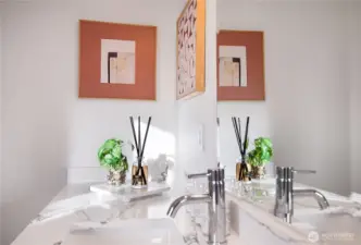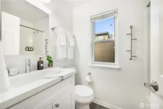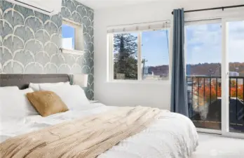 Stunning custom-built home in Queen Anne blends modern city living, filled with natual lights, flexible living & spectacular city views. Perfect for Primary home or investment or both. Main house offers 2BR, 2.5BA, updated kitchen w/granite counters, gas range & custom cabinetry. Dining area opens to cozy living room w/gas FP & built-ins. Luxe primary suite features sweeping skyline views, dbl-sided FP, soaking tub, glass-enclosed shower & walk-in closet. Add'l sunlit bedroom, full bath, & in-unit laundry completes this level. New mini split cooling system added. The self-contained lower-level ADU has a private entrance, 1 BR, 1 BA, a living room w/gas FP, & a private patio, perfect for rental income, a guest suite, or home office. The property includes 2 dedicated parking spots, & offers both privacy & convenience in this charming Queen Anne community.