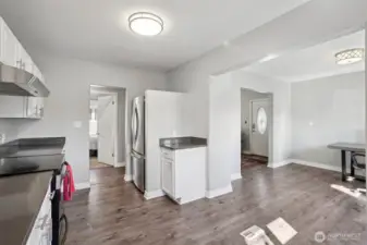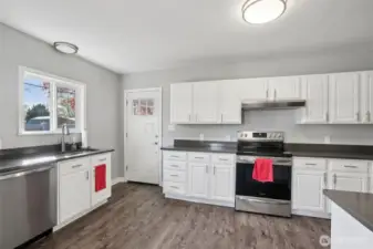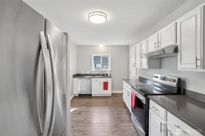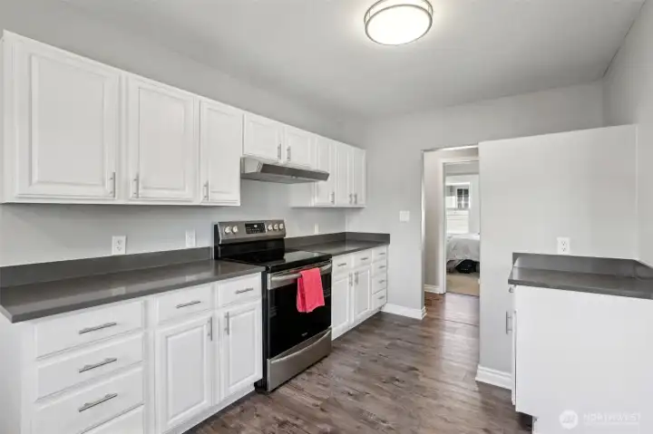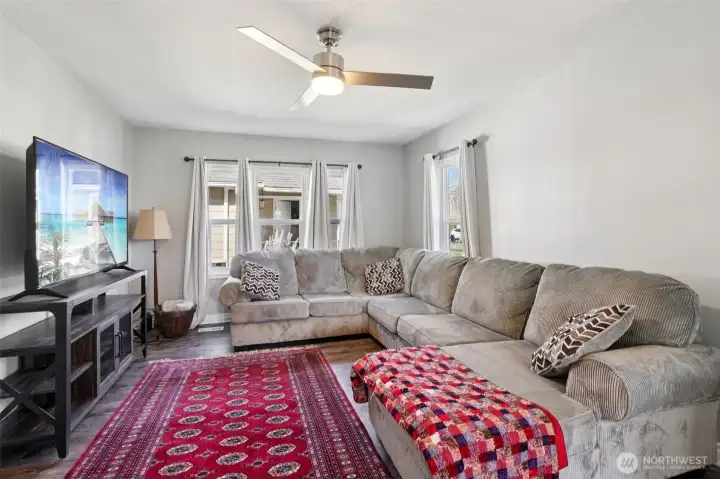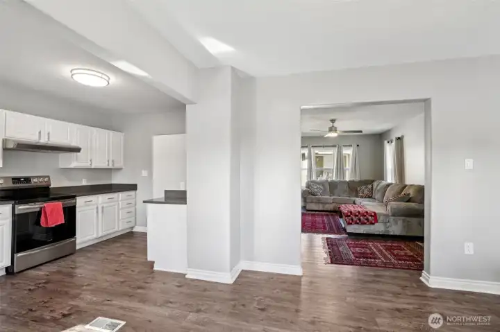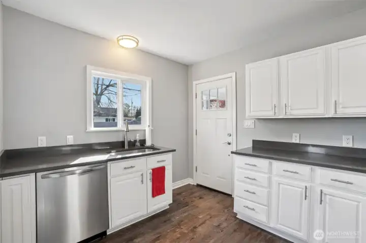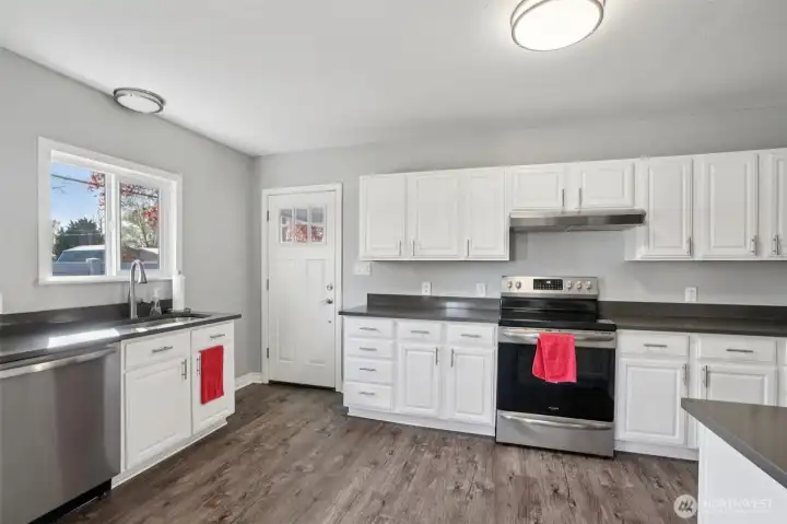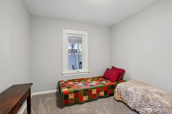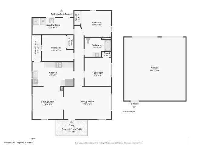 Beautifully remodeled single-story bungalow in a prime Longview location just one block from Lake Sacajawea! This charming home offers easy, comfortable living with thoughtful updates throughout. The kitchen features quartz countertops, stainless steel appliances, and excellent functionality for everyday use. Interior highlights include durable vinyl plank flooring, cozy wall-to-wall carpet, skylights, and a bright, inviting layout filled with natural light. Enjoy low-maintenance living with a manageable yard, plus a fenced side yard with a patio—perfect for relaxing or entertaining throughout the warmer months. Potted plants in the backyard can be left in place for the new owner. Detached 2-car garage with convenient alley access instead of the street, offering added privacy and ease. Ideally situated with quick access to I-5 and the Lewis & Clark Bridge, making commuting a breeze.