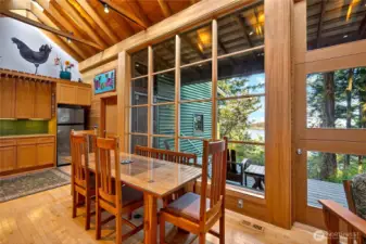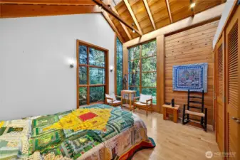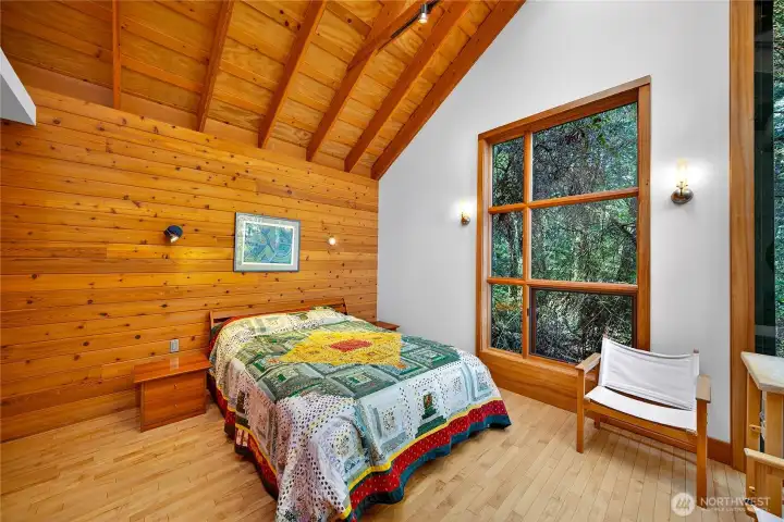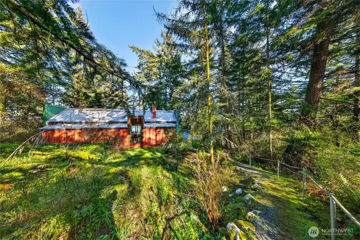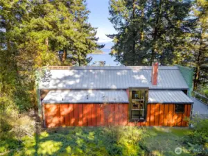 Set above the shoreline on more than an acre of medium-bank waterfront, this Northwest contemporary one-level home frames stunning views of Huckleberry and Saddlebag Islands, Padilla Bay, and Cascade Mountains.Designed by renowned architect Robert Hull, this coastal retreat embraces natural light and scenery with expansive windows and a continuous skylight running along the roof peak. The great room features a vaulted ceiling, hardwood floors, and a cozy fireplace—an inviting space that frames the ever-changing island and mountain vistas.A well-planned hallway offers abundant storage along with the forced-air furnace and hot water heater. The guest bedroom includes a Murphy bed, ensuite bath, and a loft area ideal for sleeping or storage.The exterior blends durability and Northwest character with a metal roof and a mix of metal and cedar siding. A path leads to a serene viewing area—perfect for taking in the bay, islands and wildlife. This community has beach rights to three coves. One of which has a boat ramp.Enjoy the ease of island living with the convenience of a 7-minute ferry ride from Anacortes