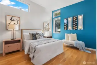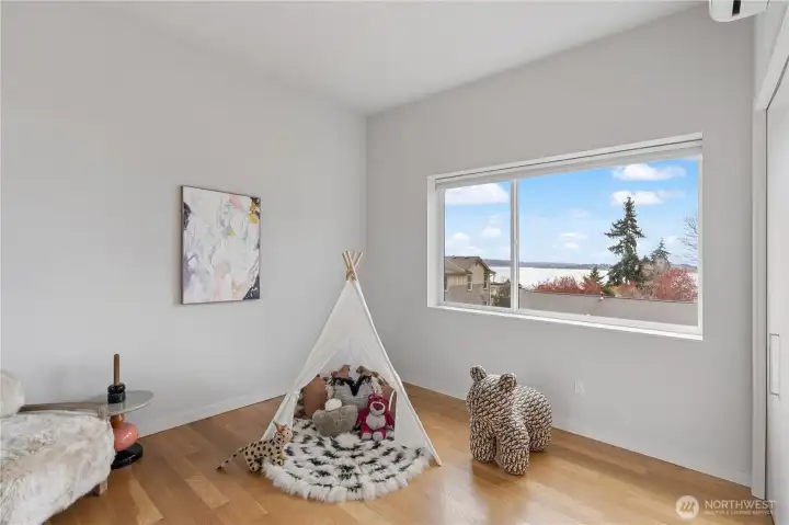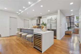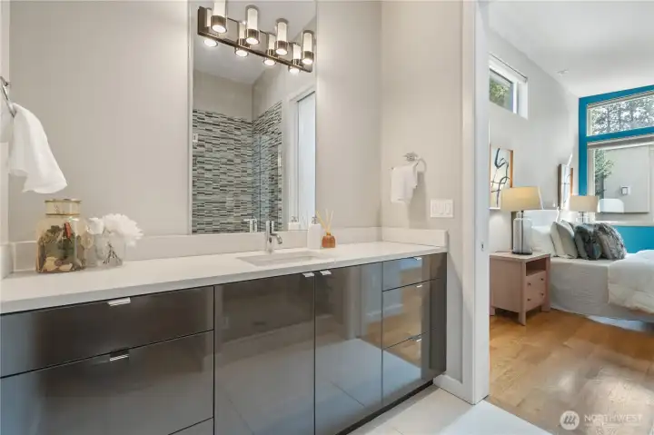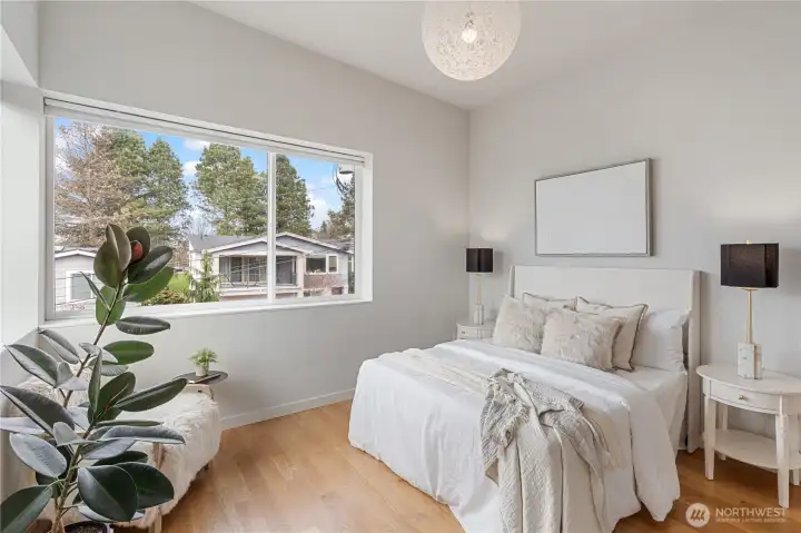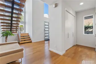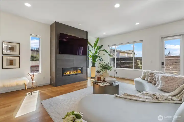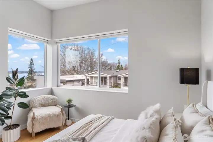 Refined, sophisticated, yet warm and inviting, this 4-Star Built Green Houghton masterpiece offers an exceptional blend of modern luxury, comfort, and lifestyle. Tucked away on a quiet dead-end street with direct access to the Cross Kirkland Corridor Trail, this nearly new contemporary home impresses from the moment you arrive. A dramatic 23-ft foyer and striking floating staircase create an unforgettable first impression, while 10-ft ceilings and select 10-13 ft vaulted ceilings elevate the sense of light and volume throughout. Radiant floor heating on both the main and upper levels delivers outstanding year-round comfort. Western and southern exposure fills the home with beautiful natural light, while lake views add to its serene ambiance. The designer kitchen is appointed with premium Miele and Thermador appliances, seamlessly connecting to open-concept living spaces finished with solid hardwood flooring and sophisticated custom details. Luxurious primary suite offers a peaceful retreat with lake views, a spa-inspired bath. Outdoors, the fully upgraded backyard features concrete pavers, premium turf, and a full sprinkler system, creating a low-maintenance space ideal for relaxing or entertaining. Built-in garage cabinetry and overhead storage racks provide exceptional functionality. Just moments to parks, trails, Google, and major tech campuses, this home offers not only stunning design and comfort, but also an elevated Kirkland lifestyle.