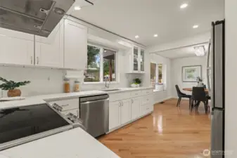 Tucked into a peaceful, park-like setting in Seaview, this beautifully maintained home offers privacy, flexibility, and a true connection to the Edmonds lifestyle. Surrounded by mature landscaping and featuring partial views of Puget Sound, the setting feels serene while remaining just minutes from downtown Edmonds, waterfront parks, dining, shopping and schools.Light-filled, open living spaces create a welcoming flow ideal for both everyday living and entertaining. The main level includes a flexible bedroom or home office, while the upper level features a spacious bonus room offering endless versatility. The primary suite is a private retreat with its own gas fireplace and a spa-inspired bath complete with heated floors and skylights.An entertainment-sized Trex deck extends the living space outdoors, overlooking lush surroundings perfect for gatherings or quiet evenings.A standout feature of the property is the versatile detached studio space, ideal for guests, a private home office, creative studio, shop, or potential MIL setup.A rare opportunity to enjoy space, versatility, and a tranquil setting in one of Edmonds’ most desirable neighborhoods.