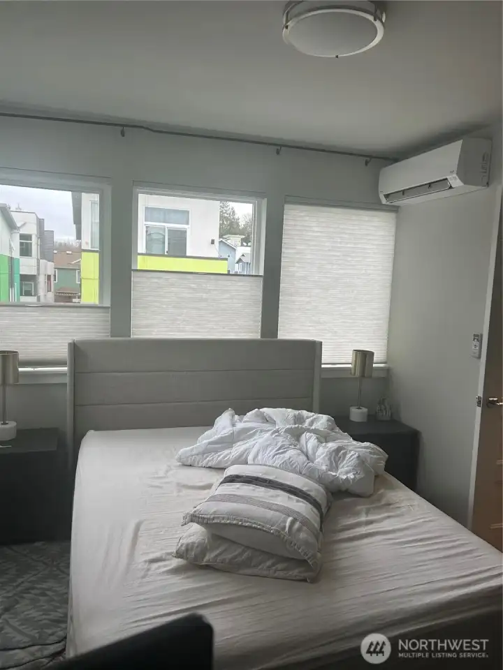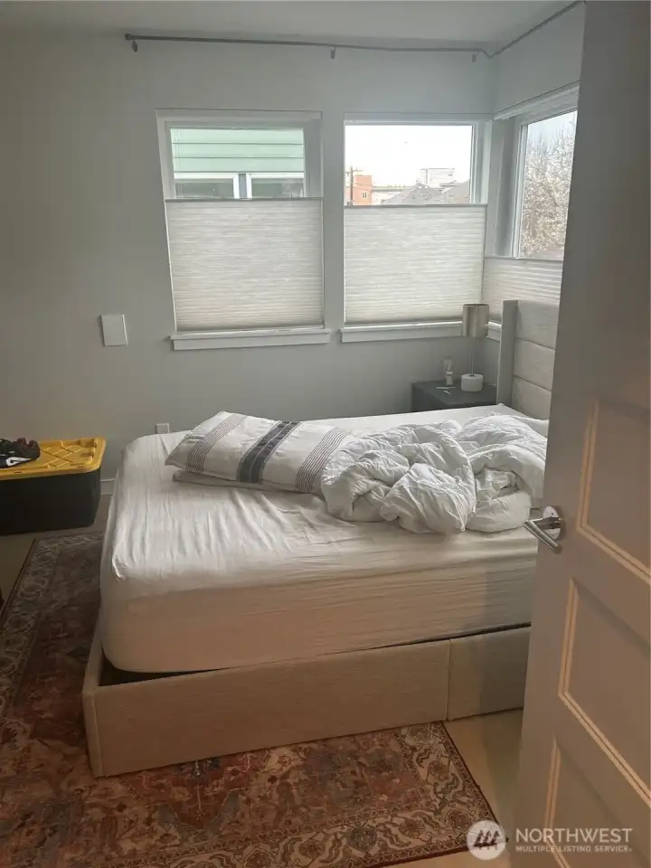 Contemporary corner-unit townhome with 2 bedrooms and 1.25 baths spanning three stories, designed with clean lines and modern finishes throughout. Expansive windows flood the home with natural light, enhancing the open-concept layout. The primary suite features a well-appointed bath with heated floors for added comfort. The main level showcases a sleek kitchen with stainless steel appliances, seamlessly flowing into the living and dining areas. Upstairs, a second bedroom and powder room offer flexibility for guests or home office use, while the private rooftop deck provides an ideal space for outdoor entertaining and city living. Located near Columbia City, with convenient access to the Mount Baker light rail station, shopping, dining, parks, and schools—making this an excellent opportunity for both homeowners and investors.