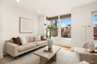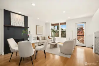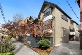 Light-filled townhome in the heart of it all, Fremont! Gated entry welcomes you into a generously sized courtyard with upgraded pavers and plenty of space for a lounge set and dining, perfect for outdoor entertaining. The first level features an attached 1-car garage with an extended depth, offering space for additional storage, along with a bedroom ideal for guests or a home office. Upstairs on the main level, you’ll find hardwood floors and a spacious living area. The kitchen offers gas cooking, a large island with bar seating, and a pantry. The main level also includes a powder bathroom. The dining area flows seamlessly off the kitchen, with a tiled gas fireplace that anchors the living room. To top it off, a balcony extends the space outdoors, overlooking the yard. Upstairs, the primary suite features vaulted ceilings and a spacious en-suite bath, along with a second bedroom and full bathroom. Recent updates include: New tankless water heater and dishwasher (2025). You will love this location, as central as it gets with Google, Adobe, and Tableau right down the street. 10 minutes to downtown, 7 minutes to I-5, and 2 minutes to Hwy 99. Easy access to bus lines and dedicated bike lanes makes this an ideal setup for commuters. Walk to Gas Works Park and connect to the Burke-Gilman Trail, perfect for biking, running, or walking the dog. Fremont’s best food and drink spots are just down the street, including Red Star Taco Bar, Local Tide, Aslan Brewing, and Stampede. No HOA!