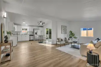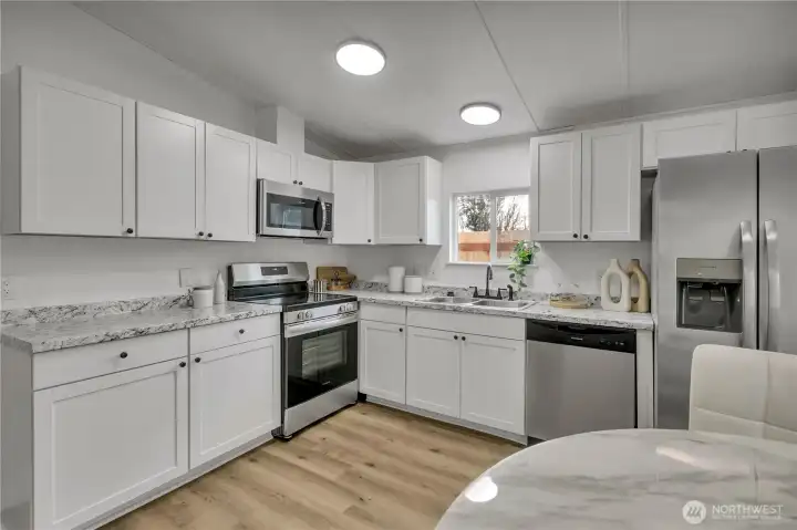 Hurry on this incredible opportunity—affordable manufactured home priced to sell! located in Desirable Sunnydale this light-filled home offers a spacious open layout with vaulted ceilings that create an airy, expansive feel throughout. Featuring 3 bedrooms and 2 full baths, the floor plan is both functional and inviting. The kitchen is equipped with stainless steel appliances—including range, microwave, dishwasher, and refrigerator—and flows seamlessly into the generous living area, making it ideal for everyday living and entertaining. Beautiful newer flooring and abundant natural light enhance the warm, welcoming interior. Step outside to a large yard with endless potential—perfect for gardening, fruit trees, outdoor living spaces, or simply enjoying the open space. Plenty of off-street parking adds convenience. Move-in ready and full of value, this home is a fantastic opportunity for homeowners or investors alike. Also, the Park has an outdoor pool which opens around Memorial Day and closes during colder season. Larger dogs are allowed, the park does not have a weight limit, but does have breed restrictions. There are basketball courts for recreation as well. Don’t follow your map once into the development. Follow the directions below given when in the development for accuracy to find home.