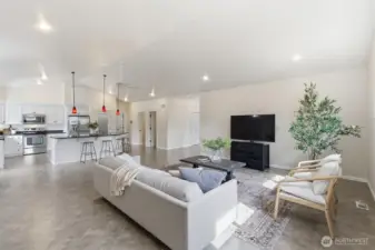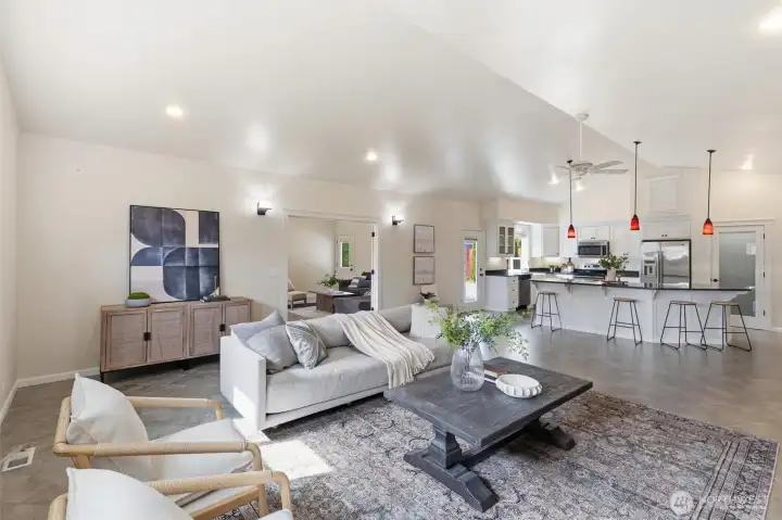 Step into your dream home with this beautifully maintained 2,500 sq. ft. rambler, perfectly situated on a generous half acre lot with room to add an ADU or workshop. As you enter the foyer, you are greeted by a bright den ideal for a home office, study, or reading nook. Beyond, the soaring ceilings of the open great room fill the home with natural light, creating a warm and inviting space for both everyday living and entertaining. The thoughtful floor plan places the primary suite on one side of the home, offering a private retreat, while additional bedrooms on the opposite side provide comfort and flexibility for guests. The spacious kitchen is a true centerpiece, boasting a massive island, a large pantry, and abundant counter space—perfect for gatherings, entertaining, or daily life. Every detail has been carefully maintained, including a top-of-the-line heat pump with A/C, a durable 70-year roof with peak venting, and freshly painted interior and exterior walls, ensuring comfort and peace of mind. Outside, the lifestyle continues with a massive stamped concrete patio for entertaining, a covered front porch for morning coffee, RV parking, and the privacy of a quiet dead-end street. Located near Jennings Park and the local YMCA, with all the amenities of town just minutes away, this home blends modern comfort, thoughtful design, and versatile outdoor living. It’s a place where every day feels comfortable and truly at home.