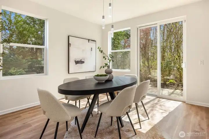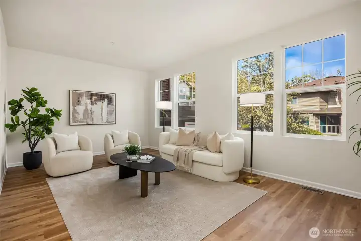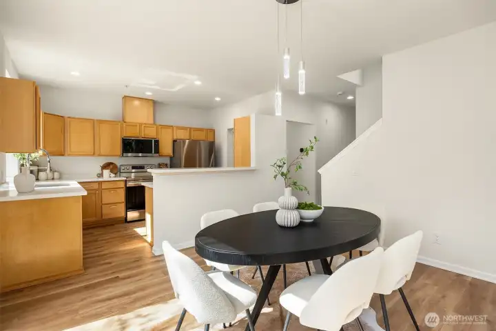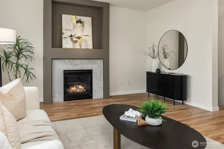 Rare Corner Unit with 2025 Roof & Custom Finishes! Experience the perfect blend of modern design and natural tranquility in this stunning 3-bedroom 2.5 bath corner unit. Completely transformed for the contemporary lifestyle, the open-concept main floor features luxury vinyl plank flooring and a chef-inspired kitchen boasting sleek quartz counters and stainless steel appliances. The cozy living room boasts an abundance of natural light illuminating the custom-tiled gas fireplace, while your dining area opens directly onto a private, greenbelt-protected patio—your own quiet sanctuary. The upper level is a retreat of its own, featuring a primary suite with a redefined en-suite and custom lighting, hosted by two large bedrooms and a full bathroom. Need a dedicated workspace? The ground-level den/flex room is the ultimate home office or gym, strategically tucked away from the main living areas with a large Costco/storage utility closet, just steps from the oversized 2-car garage. With a brand-new 2025 roof and a prime commuter location near SeaTac and the Light Rail, this is "turn-key" defined. Schedule a showing today and come realize your house dreams!