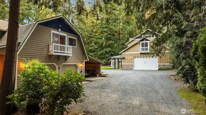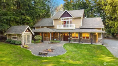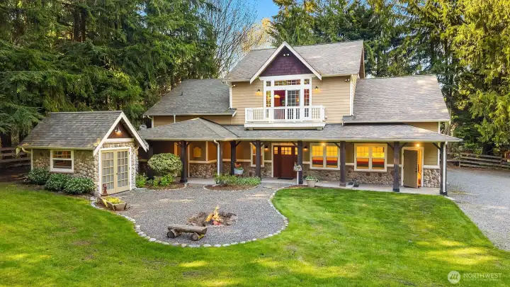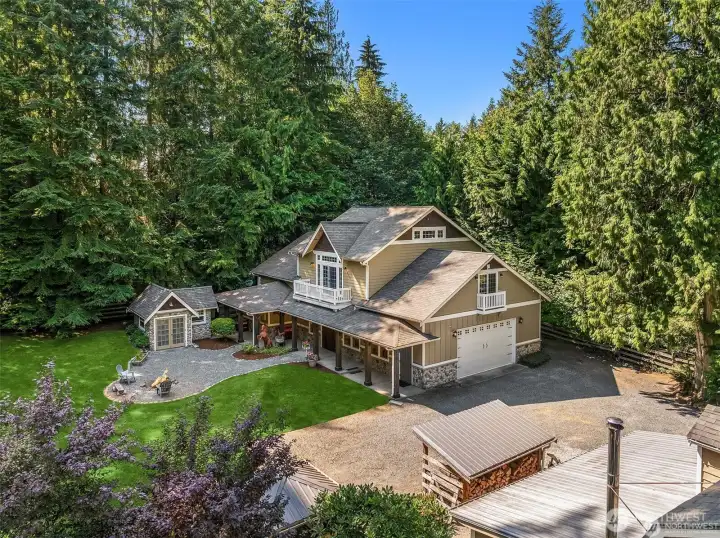 Discover this Stunning two-story Craftsman set on 1.3 private acres in sought-after Maltby. Ideally located just 7 minutes from Woodinville and 10 from Bothell, this home offers the perfect balance of peaceful living and everyday convenience. Thoughtfully designed with modern elegance, the chef’s kitchen shines with New quartz countertops, soft-close cabinetry, double ovens, a gas cooktop, and ample storage. Upstairs, you’ll find three spacious bedrooms, a versatile bonus room with its own balcony, and a conveniently located laundry room. The expansive primary suite is a true retreat, featuring a cozy fireplace, private balcony, luxurious five-piece bath, and a generous walk-in closet. Step outside to enjoy the property offering privacy, room to roam, and endless possibilities. A whole-house and shop generator provide peace of mind year-round. The impressive 2,022 sq ft shop is a standout feature—complete with a car lift, finished floors and ¾ bath. Additional 1,370 sq ft of upper-level living space including a fully equipped kitchen and an office/bedroom, making it ideal for multi-generational living, guests, or potential rental income. Chicken coop, Prolific Organic Blueberry bushes, horseshoe pits, firepit and Potting/Playshed with Water, Electricity and Heat. With easy access to Hwy 522, I-405, and Hwy 9, commuting is a breeze. New Well, Water Heater, and Exterior paint + a pre-inspection with completed repairs, make this an exceptional and move-in-ready opportunity.