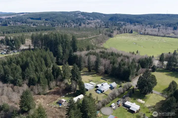 Solid and well-kept 1940 1½-story home set on 3.25 serene level acres. This 3-bedroom, 1 full bath residence offers a warm, functional layout with a blend of fir and vinyl flooring. Multiple heating options—heat pump, wood, and baseboard—providing year-round comfort.The property is rich with natural beauty, featuring mature old-growth Fir, along with Spruce, Maple, and Hemlock trees. Enjoy a peaceful territorial view and a truly rural lifestyle. The property does have a nice pasture.Ideal for hobbyists, farmers, or those needing space—numerous outbuildings with durable metal siding and roofing, one with electricity, concrete floor and wood stove. The others have a mix some with dirt, wood floors and some no electricity. Ample room for RV parking and large equipment. Additional highlights include a fenced 200-foot garden area and a small orchard, perfect for sustainable living. A unique opportunity to own usable acreage with versatility and charm.