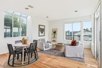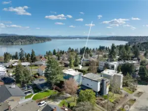 Perched above it all, enjoy views of Mount Rainier and Lake Washington. Tall ceilings and excellent sunlight. This home has expansive common areas. Lovely chef's kitchen with social space, formal living and dining, plus a study on the main. Tons of natural light with banks of windows facing south and east. 3 bedrooms and 2 baths upstairs. The first floor den would be great for home office and multigenerational living. There is a massive 2-car garage with extra parking. Fresh paint, newly refinished floors, a well loved home. Just blocks to wonderful Seward Park and Martha Washington.