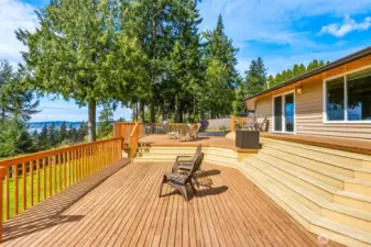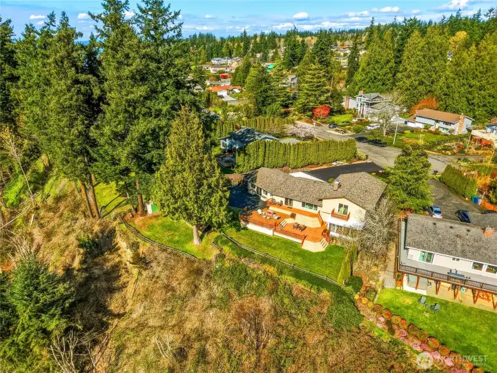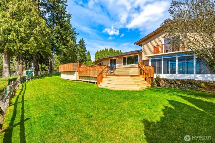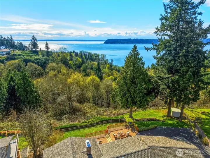 Discover a rare blend of luxury, privacy, and unforgettable Northwest beauty in this exceptional 4 bedroom, 3 bath view home set on a sprawling .76 acre lot. Tucked away on a quiet dead-end cul-de-sac in the highly sought-after Mukilteo School District, this remarkable property offers 2,356 square feet of thoughtfully designed living space framed by sweeping views of the Sound, the Olympic Mountains, and the southern tip of Whidbey Island. The beautifully updated kitchen is both stylish and functional, featuring newer cabinetry, quartz countertops, tiled backsplash, stainless appliances, gas cooktop, undermount stainless steel apron sink, and a moveable island ready for everyday living or effortless entertaining. The primary suite is a true retreat with a private bath and its own veranda deck where the views steal the show. Downstairs, a spacious second primary suite offers ideal flexibility for guests or multi-generational living, alongside a bathroom with laundry and a generous bonus room with gas fireplace and access to the attached sun room. Outdoor living shines with a multi-tiered entertainment deck, fully fenced grounds for your furry friends, large level driveway, and RV parking. A fully finished 575 sq ft garage, Presidential 50-year roof, gas furnace, gas fireplaces, gas hot water tank, pre-inspection already completed, and an incredible setting combine to create a home that is as impressive as it is inviting.
