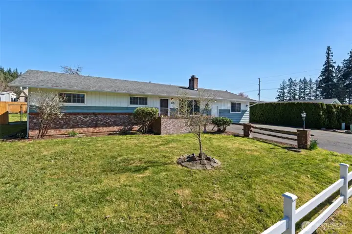 Mid-Century rambler on a large corner lot with space, charm, and incredible versatility! This spacious 4-bedroom home features a newer roof, newer heat pump, and a warm, inviting layout. The oversized primary suite offers a private bath and plenty of room to unwind. The open kitchen and dining area is ideal for everyday living and entertaining, complete with a built-in hutch for added character. Outside, enjoy mature landscaping, a large fully fenced level backyard, expansive patio, and wiring in place for a hot tub—perfect for hosting and relaxing. Need room for toys, projects, or hobbies? This property delivers with a raised 12x24 covered carport for RV or boat storage, plus an additional 20x29 covered carport/shop that could also make an amazing outdoor bar or gathering space. Two storage sheds add even more function, including one with water and power.Located in a quiet neighborhood just minutes to I-5, with schools, parks, and dining all within walking distance!