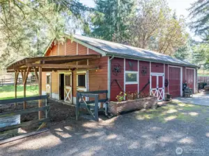 Experience refined country living in NE Olympia’s coveted Foxhall community. Set on 4.65 private, park-like acres, this exceptional 3,299 sq ft rambler offers a rare blend of sophistication, functionality, and equestrian lifestyle. Thoughtfully designed for both grand entertaining and comfortable everyday living, the home features 3 bedrooms and 2.5 baths with expansive, light-filled living spaces anchored by a warm fireplace and seamless indoor-outdoor flow. The well-appointed kitchen opens effortlessly to dining and gathering areas, while the covered porch and patio create an inviting setting for year-round enjoyment. Be sure to check out the perfect home office just off the entry to the home. Equestrian enthusiasts will appreciate the 3-stall barn, professionally set up for boarding—ideal for income potential or a turnkey personal setup. Miles of established riding trails—approximately 7 miles—directly border the property, offering immediate access to one of the area’s most sought-after riding networks. The level, usable acreage provides endless opportunity for pasture, additional facilities, or a custom estate vision. Ample garage space and room for RV parking or future outbuildings further enhance the property’s versatility. Privately situated within an established acreage community yet just minutes to amenities, this is a rare opportunity to own a luxury equestrian estate where lifestyle, land, and location align.