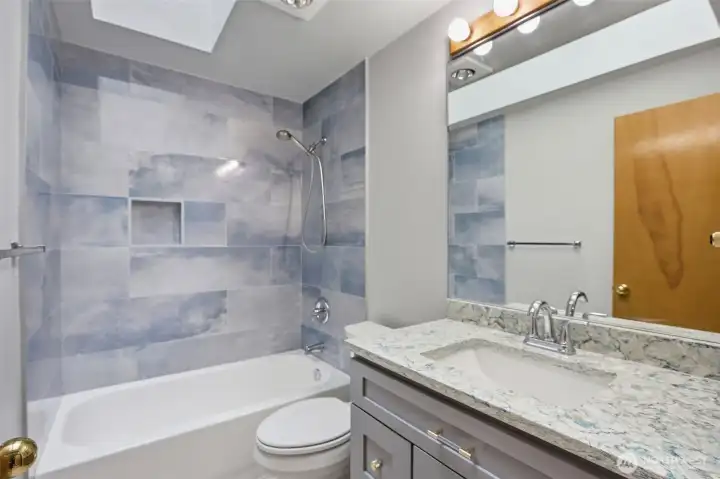 Welcome to 4914 S 310th Pl, Auburn, WA beautifully remodeled 4-bedroom + bonus room or 5th bedroom, 2.5-bath home in the desirable Sterling Park community on Auburn’s West Hill. This move-in-ready home features a chef-inspired kitchen with NEW quartz countertops, stunning waterfall island, pantry, NEW cabinetry, and NEW stainless steel appliances. Inside, enjoy vaulted ceilings, beautiful wood flooring, and fresh interior/exterior paint creating a bright, modern feel throughout. The spacious primary suite offers a walk-in closet and spa-like 5-piece bath, while all bathrooms have been tastefully updated and enhanced with skylights for natural light. Generous room sizes, a large garage, and all appliances included add everyday convenience. Situated on a large lot with permanent open space to the side and rear, this home offers exceptional privacy. Conveniently located near parks, top-rated schools, shopping, dining, and easy access to I-5, I-167, and a 50 year roof.