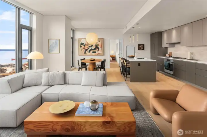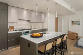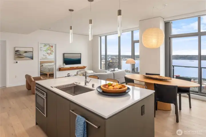 Spire Condominiums, at the apex of Belltown, South Lake Union, and Denny Triangle, offers iconic Space Needle and water views unlike any other new condo building in Seattle. This coveted location allows easy access to retailers, restaurant/bars, technology centers, arts, outdoor recreation and entertainment. Rising high at 41 stories of incredible living spaces including this large 1 Bed/1 Bath with downtown Seattle views + kitchen with Bosch appliances, island, bedroom fits king bed, parking. Amenities include concierge, top floor fitness center, pet run, 40th floor clubroom, dining, terraces, co-working space, conference room, theater, movement studio + more. Buyer must register broker on first visit. Ask about Winter Rate Incentive!