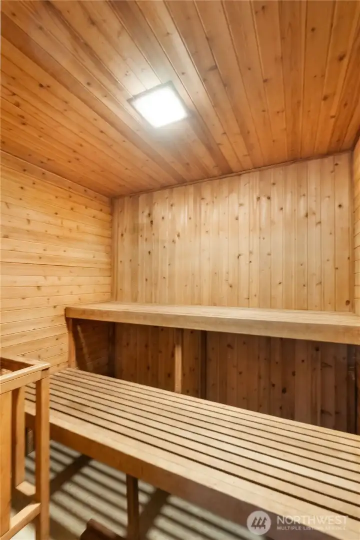 Highly sought after Top-floor, end-unit condo in Sound Vista—one of the few with soaring vaulted ceilings, no neighbors above! High amongst the trees, this home offers peekaboo Puget Sound views from the sunny deck and two bedrooms. Freshly painted with resurfaced bathtubs, it’s move-in ready. A wood-burning fireplace adds charm & warmth. All appliances included. Enjoy summer at the pool and year-round access to the clubhouse, sauna, and party room with kitchen. Walk to downtown Burien, with shops, restaurants, and transit nearby. Near SeaTac Airport, beaches, and parks, with a trail down to Seahurst Park beach! Includes 2 parking spaces! No rental cap, pets allowed, and seller will pay the special assessment at closing—an incredible value!