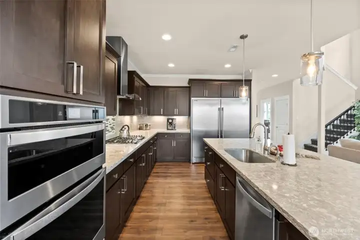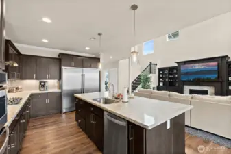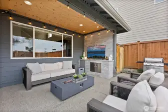 Thoughtfully designed and loaded with upgrades, this home offers standout indoor-outdoor living in a highly desirable Puyallup location. The open-concept main level features a great room with a gas fireplace, creating a bright and inviting space that flows seamlessly into a custom kitchen. Designed to impress, the kitchen includes a full slab quartz island, 60” refrigerator/freezer, gas cooktop, convection oven, soft-close cabinetry, and an oversized walk-in pantry. Step outside to a fully covered patio built for year-round enjoyment, complete with outdoor TV, refrigerator, quartz counters, lighting, smart sprinkler system, and an extended patio space with a hot tub that stays, creating a true backyard retreat. Upstairs, the primary suite features double doors, a spa-like bath with a freestanding tub, dual sinks, and quartz counters. Additional bedrooms include walk-in closets, offering both comfort and functionality. A mudroom with built-in bench and shelving, along with an oversized garage with extra shop space, adds everyday convenience. Smart home features include a smart lock, thermostat, microwave, oven, sprinkler system, and a Ring doorbell. The home is also wired with a Bose surround sound system, with speakers throughout, and custom Levolor blinds. With premium features, flexible living spaces, and high-end finishes inside and out, this home offers a level of comfort and detail that’s hard to find.