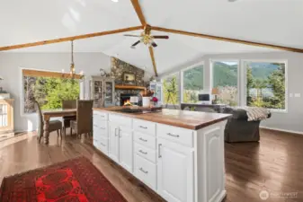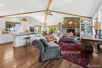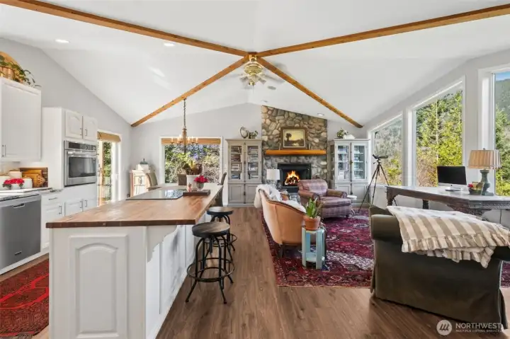 Create the lifestyle you’ve been envisioning—your own private homestead where space, self-sufficiency & natural beauty come together. Awe-inspiring views surround you in every direction! This rare offering includes 2 tax lots totaling 26 acres, ideal for a multi-generational compound, future build potential, or room to expand. Live immersed in the seasonal rhythms —summer gardening in a 40x40 tilled space, biking to the lake, vibrant fall colors, & winters by the wood-burning frplc w/snow-capped mountain views. Decks perfectly positioned for both sunrise & sunset views! Inside, the 3 bdrm, 2.75 bath home blends comfort w/functionality. Vaulted ceilings elevate the great room, while the remodeled kitchen features white cabinets, quartz counters, undermount sink & butcher block island. Durable LVP flooring + new carpet & paint. Primary suite w/walk-in closet & spa-like bath w/self-heated jetted tub, slider to deck. Well-designed for indoor-outdoor living, LL offers a spacious family room w/wood burning stove, 3rd bdrm & bath + separate entrance & 2 car garage. Enjoy access to a private lake shared by just 9 properties. Outbuildings include pole barn w/enclosed workspace, power & ample covered storage + RV parking w/electric/water. Chicken coop too! Second 1-acre parcel features separate well, 2-bdrm septic & electric meter. Generator w/transfer switch, tractor w/6 implements, log splitter & Ford pickup w/plow included to make this property turn-key! In the PBRS KC tax program.