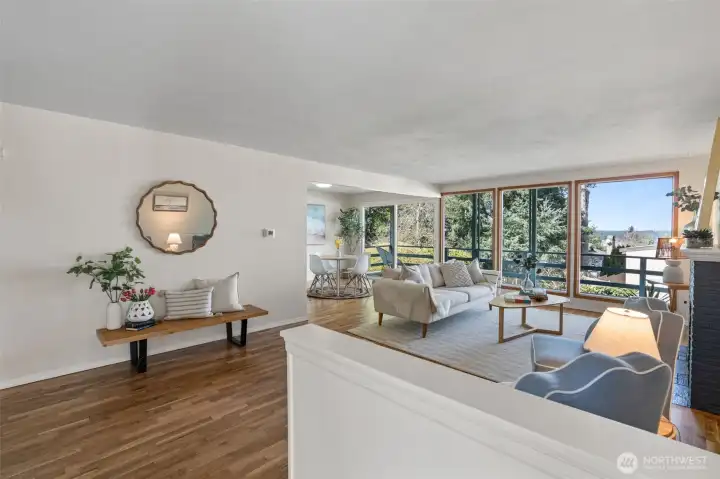 Welcome to this Mid-Century Modern home in desirable North Tacoma, offering space, character, and a slice of Puget Sound and Point Evans views from the back deck. This 4-bedroom, 1.5-bath home features a functional layout with bright living spaces, a spacious family room, and two fireplaces that add warmth and charm. The primary bedroom includes a convenient half bath, and a dedicated utility room enhances everyday functionality. Recent updates include a new roof (2024) and new furnace (2023), providing peace of mind for years to come. Outside, enjoy off-street parking and a covered carport for two vehicles. With its classic mid-century appeal, solid updates, and prime location near shopping, dining, and waterfront access, this home offers a great opportunity to personalize and build equity in one of Tacoma’s most sought-after neighborhoods.