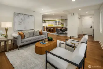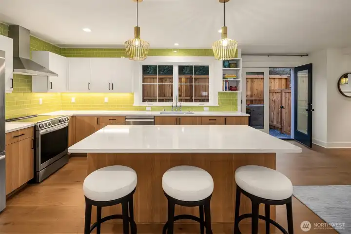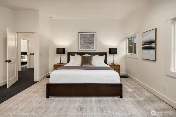 Exquisite craftsmanship + bespoke finishes highlight this home of distinction in Columbia City. Open-concept interior spaces flow seamlessly with natural light streaming thru expansive windows. High-quality construction choices include solid Douglas fir millwork + wood-cased windows. Showpiece kitchen features premier stainless appliances, quartz counters + stylish dual-toned Canyon Creek cabinetry. Primary bedroom suite with soaking tub + heated floors. Eco-friendly elements include Marmoleum flooring + EV conduit in attached garage. Guest bedroom with ensuite on main level. Entertain effortlessly with fenced, landscaped yard. Close to light rail, eclectic dining, groceries, lake + parks.