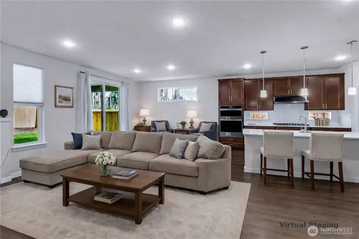 Immaculate 2023 Premium Rambler – Greenbelt Serenity in The Pines at Sunrise! This home truly feels like new and has been exceptionally maintained inside and out. Tucked away on a quiet street and backing to a peaceful greenbelt, it offers the perfect blend of privacy, comfort, and everyday enjoyment, along with the benefit of a larger lot in a beautifully maintained neighborhood. Step inside to a bright and inviting layout designed for easy living and entertaining. Every detail reflects pride of ownership, making this home truly move-in ready. The chef-inspired kitchen features high-end appliances. Enjoy year-round comfort with a dual-fuel HVAC system -Heat Pump for efficient heating and cooling, along with a gas furnace providing reliable warmth during colder months. Love where you live — enjoy outdoor living year-round with a covered patio and a spacious, flat backyard perfect for gatherings, play, or simply relaxing. The well-positioned fully fenced lot offers excellent drainage, keeping the yard usable year-round, while the private greenbelt setting creates a calm, natural backdrop you’ll appreciate every day. Take a stroll through the neighborhood and enjoy stunning Mount Rainier views along with easy access to nearby parks, adding even more lifestyle value to this incredible home. Rare opportunity to own a home that offers not just beautiful interior space, but an outdoor lifestyle to match. This one checks all the boxes — truly a must see.