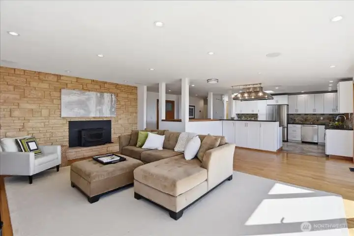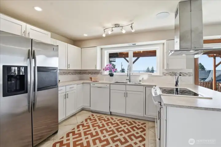 Stunning Sound View home in Edmonds Bowl. Remodeled & updated throughout, new TPO roof 2025, fresh paint in/out. Full view 18' nana wall (imported from Germany) in living room, hardwood floors in living, dining & underneath carpet in main floor bedrooms. All electrical (replaced with 12 gauge), all new plumbing, furnace, lighting, fixtures, sound system, 2"x 6" walls, new siding & trim, insulated foundation, entry gates, driveway, windows, along with custom finished African mahogany interior trim. There is a list in the house with more info.