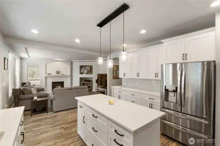 Meticulously maintained home in Lakeland! Exterior house painted, the interior painted, plus inside the three car garage. Newer carpet 2nd floor, new LVP entire lower level, 4 inch real wood trim through out the interior, Graber 2" wooden blinds all window coverings. Enjoy your gas fireplace with new beautiful mantel, shiplap with slate and hearth and recently serviced. New kitchen cabinets with soft close, added kitchen island, quartz countertops, undermounted sink, backsplash, all new appliances, plus new garbage disposal. Primary bathroom refresh, new vanities, mirrors, faucets, lighting, and paint. Guest bathroom complete remodel with tile work, and new features through out. Wood shelving in laundry room. Custom covered patio with tung and groove ceiling, built in lighting with electric plugs. Entire new roof in 2025 with 25 year material warranty and 10 year labor warranty. Duct work cleaned, all upstairs carpet professionally steamed cleaned. Entire new fence and gates. Professionally landscaped yard with sprinkler system. Garage bench and cabinets stay. Five bedroom home, 5th bedroom could be used as a bonus room.