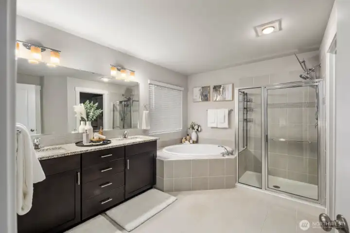 Stunning, like new home in the highly sought after Timbers community of Lake Stevens. Designed with both style and livability in mind, this light filled residence showcases a seamless open concept layout, luxury vinyl plank flooring, and expansive windows that bring the outdoors in. The living room is a true focal point, featuring a striking designer accent wall, custom built ins, and a dramatic floor to ceiling gas fireplace that anchors the space with warmth and sophistication. The gourmet kitchen is equally impressive, offering quartz countertops, stainless steel appliances, an oversized island, and a walk in pantry, all flowing effortlessly into the dining area for everyday living and entertaining. A main level bedroom and three quarter bath provide flexibility for guests, work from home, or multi generational living. Upstairs, a spacious bonus room offers the perfect retreat, along with four additional bedrooms including a beautifully appointed primary suite with a soaking tub, dual vanities, and a generous walk in closet. Step outside to a private, fully fenced backyard complete with a patio, hot tub, and peaceful backdrop of mature trees. Ideally located just minutes from Lake Stevens with wake surfing, boating, summer barbecues, and sandy beaches, plus easy access to parks, amenities, and commuter routes.