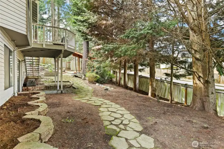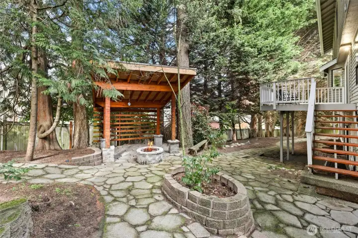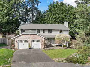 Spacious 3-level home tucked away on a private cul-de-sac, surrounded by lush, storybook landscaping reminiscent of a Secret Garden. Take in the serene views from the living room's picture window or gather in the updated kitchen that opens to an expansive family room—perfect for everyday living and entertaining. The lower level offers great flexibility with its own backyard entrance, cozy wood-burning fireplace, bonus room, and bathroom—ideal for guests or potential MIL conversion. Step outside to enjoy a beautifully designed yard featuring a firepit and covered entertaining space. Upstairs boasts 5 bedrooms and 2 bathrooms, including a generous primary suite and the potential for a second primary. The main level features both gas and wood fireplaces for added charm. A Presidential roof provides peace of mind, while fruit trees—cherry, plum, and pear—enhance the setting. Complete with an attached 2-car garage. Home has been pre-inspected.