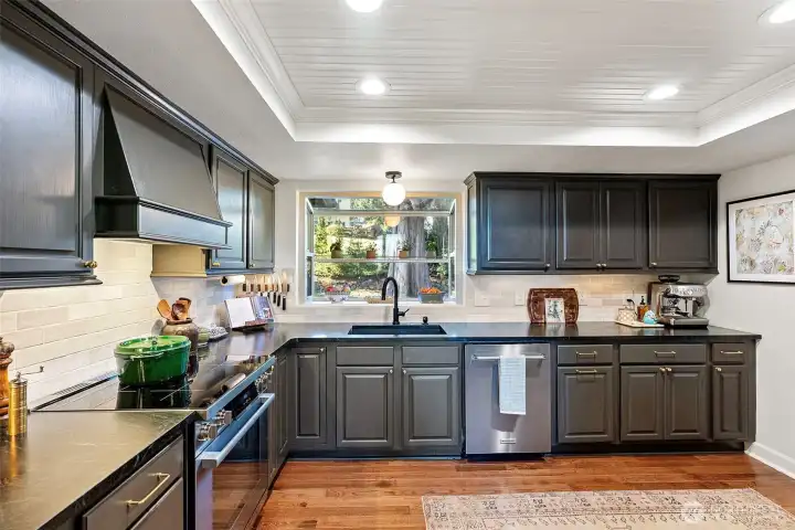 Extensively remodeled from top to bottom, this home blends thoughtful design with everyday function. Every detail has been considered, from the warmth of red oak hardwoods and custom trim work to the elevated finishes you'll notice throughout. You'll never want to leave the kitchen; featuring soapstone counters, Bosch appliances, curated touches and a custom wood vent hood. Multiple built-ins across the home add both character and practical storage. Upstairs, the primary suite is a true retreat with a spacious layout and a beautifully finished ensuite with marble flooring walk-in shower, dual shower heads, and a dual vanity. 3 additional bedrooms and a well designed full bathroom complete the upper level. Downstairs offers additional living space with a wet bar; perfect for hosting or unwinding. An open and usable space with built in bench seating creates a truly functional space. Outside, enjoy a fully refreshed exterior, and a backyard filled with mature landscaping, fruit trees, and space to gather. This home has been truly reimagined and designed with both beauty and lifestyle in mind. Easy access to Hwy 16, local shopping and restaurants are just minutes away.
