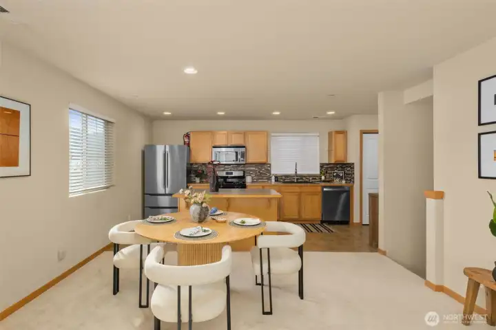 Welcome home to this beautiful townhome in the heart of the Issaquah Highlands. This well maintained end-unit with attached garage has it all! Fresh paint, new carpet and modern updates throughout. Enjoy a bright open layout, spacious kitchen island, stainless steel appliances, gas stove, pantry and in-unit washer/dryer. No income limitations! Unbeatable location close to parks, shops, park and ride and award winning Issaquah School district!