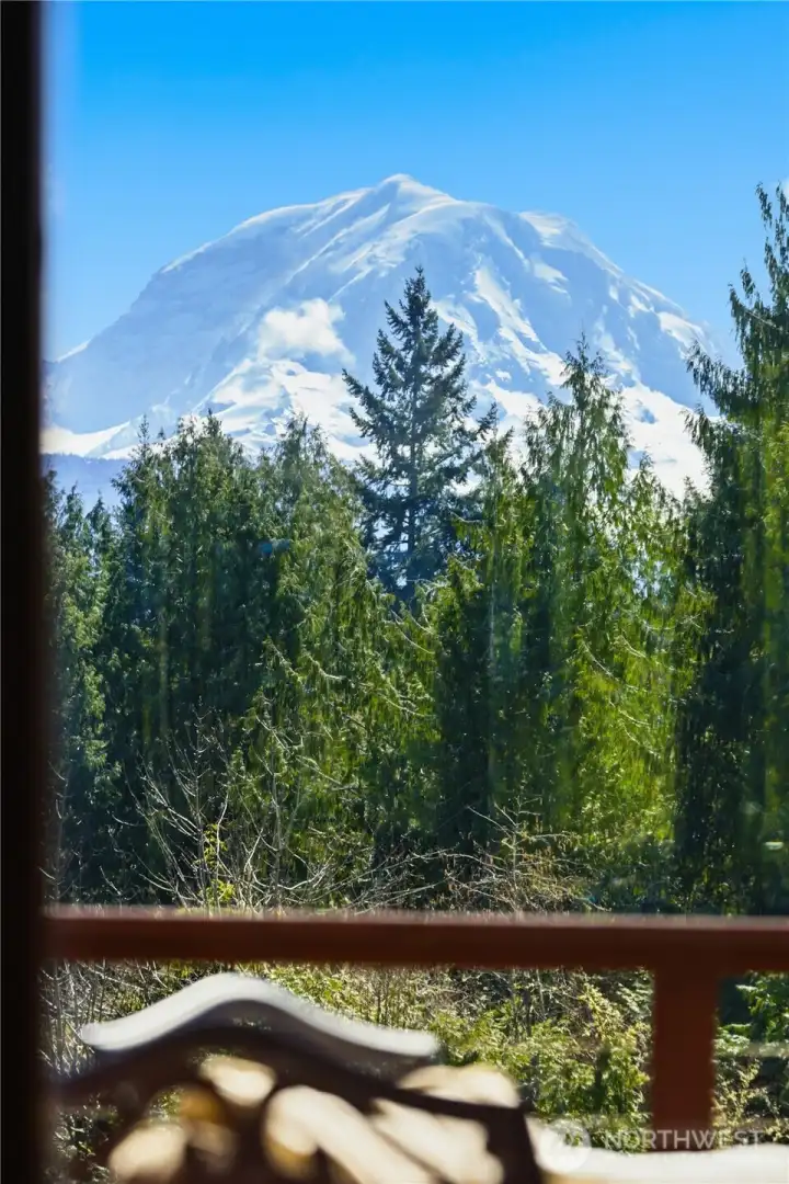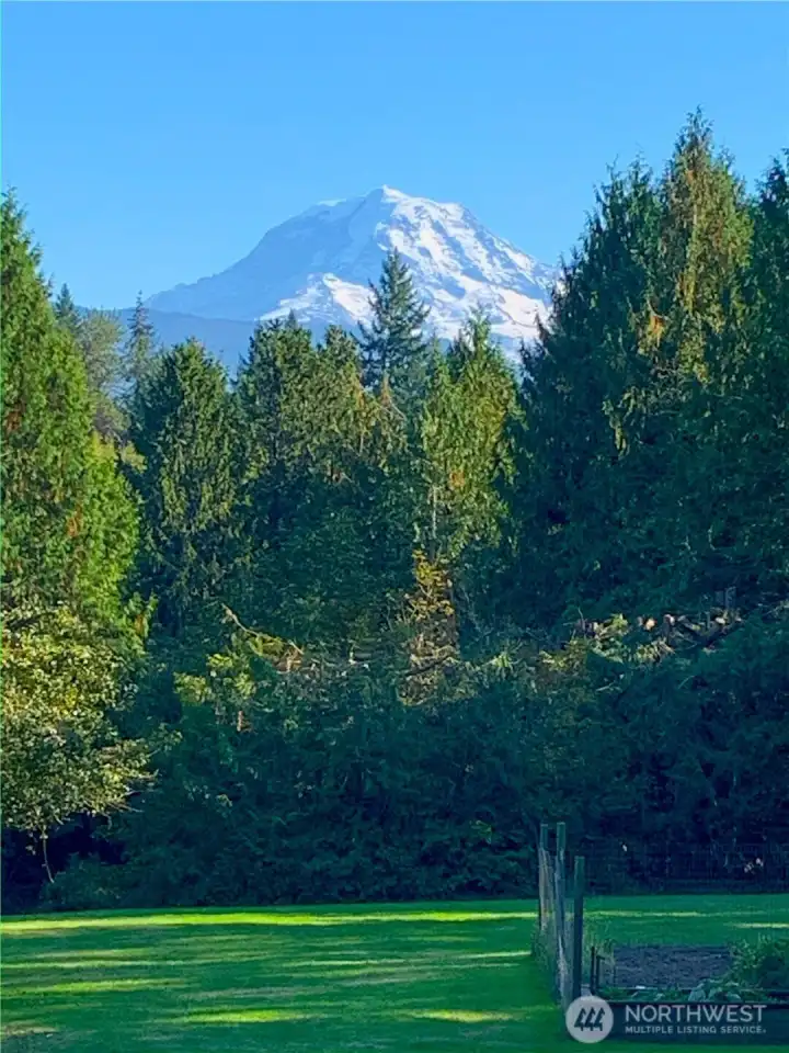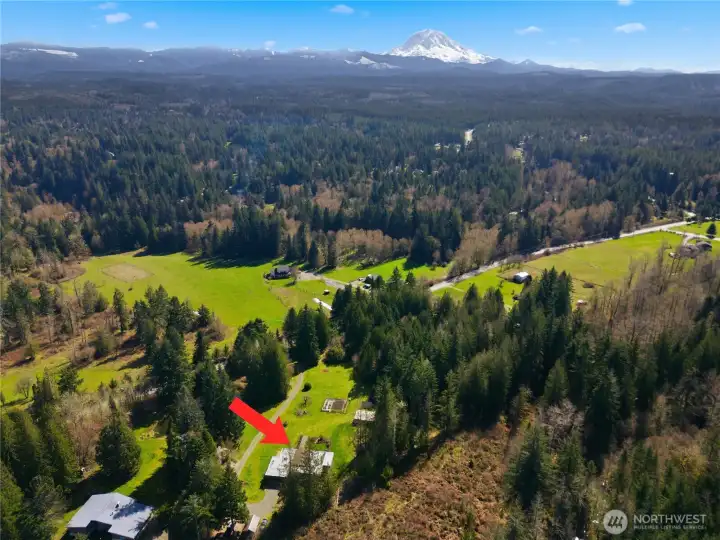 Welcome to your own private paradise! This custom home is built to showcase views of Mt. Rainier. A - Frame design is perfectly aligned for viewing angle. Large open usable spaces abound with room for gardening, horses, chickens, goats, etc. Greenhouse is in great shape. Barn can be ready for equestrian use and there is plenty of space for an outdoor arena. Updates abound in Kitchen & Master with impeccable care and pride of ownership on display at every turn. Home has a private well with back up generator hook-up. This home lives like a one-story with Master on the main and the benefit of daylight basement with lots of room for a future apartment, ADU / MIL with separate entry. Backed up to 80 acres of forestry preserve land this home truly is one of a kind. The shared pond, majestic Rainier Views and large open spaces make for a setting that is irreplaceable. Additional vacant land lot not included in this listing. Call today to schedule a tour and visit the property of your dreams perfectly located between town and country!
