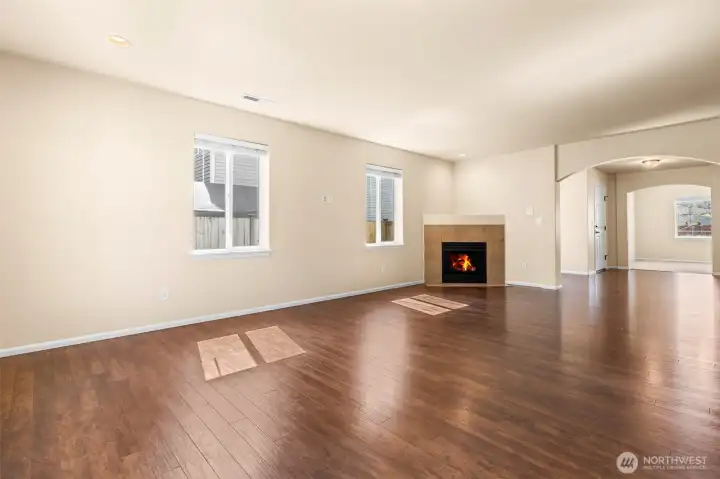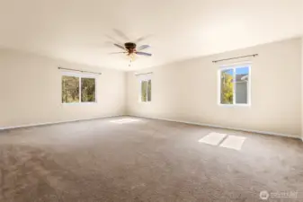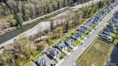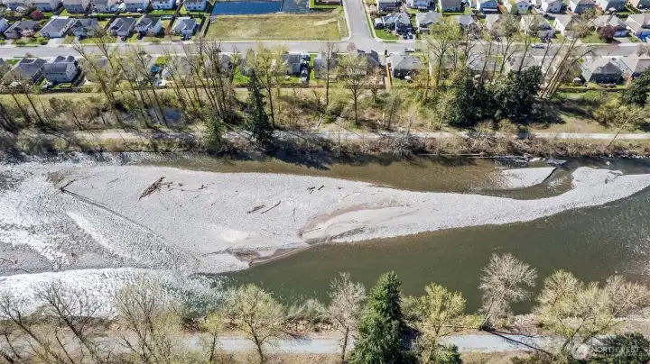 Welcome to your private riverside retreat offering over 3,000 sq ft of beautifully designed living space. This open-concept home features 4 bedrooms, 3 bathrooms, a dedicated office and a spacious upstairs bonus room—perfect for flexible living. The gourmet kitchen is the heart of the home and ideal for entertaining-showcasing a massive island, abundant cabinetry, huge walk-in pantry, and oversized breakfast nook. The main floor features a cozy gas fireplace while upstairs you'll find convenient laundry and generously sized living spaces. The expansive primary suite features an enormous walk-in closet and private bath. Step outside to your backyard oasis with Carbon River views, direct access to miles of scenic riverside trails, and the soothing sound of the river. The fully fenced yard includes a covered patio, turf play pad, large shed, and Rain Bird sprinkler system with wireless control and rain sensor. Additional features include central A/C, forced air furnace, and generator-ready wiring. Located in welcoming River's Edge w/ a community park, this home offers the perfect blend of comfort, space, and nature.