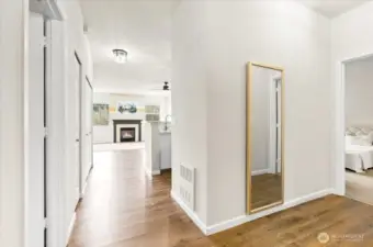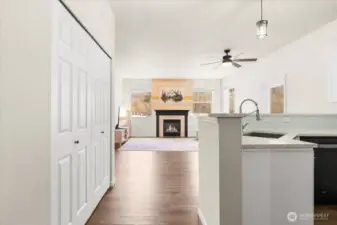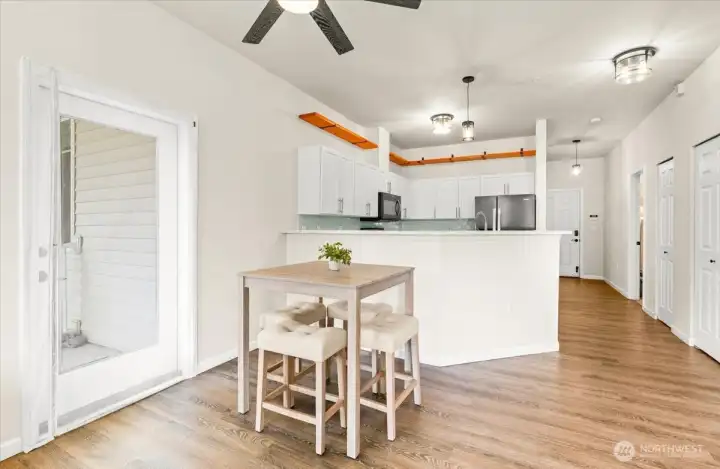 Prime location! Welcome to this beautifully updated condo in the desirable Riverfront Landing community. This light-filled home features 9-ft ceilings, an open floor plan, and a stunning remodeled kitchen with massive granite countertops, new cabinetry with soft-close drawers, stainless steel appliances, and abundant storage. The spacious living area offers a stylish accent wall and cozy gas fireplace, opening to an oversized wrap-around deck—perfect for morning coffee, relaxing evenings, or entertaining guests. The oversized primary suite provides plenty of space to relax or work from home, complete with a private bath featuring dual vanities and a generous walk-in closet. Enjoy an incredible outdoor lifestyle right outside your door. Located along the Sammamish River with direct access to the Burke-Gilman Trail, you can bike, walk, or explore miles of scenic trails. Stroll into downtown Bothell for coffee, dining, and local shops, or launch your kayak and paddle toward Woodinville’s wineries. Additional highlights include extra exterior storage, two designated covered parking spaces in a secure garage, kayak storage, guest parking, and convenient elevator access. Ideally located just minutes from major freeways, shopping, dining, recreation, and Lake Washington, this home offers the perfect balance of nature, convenience, and vibrant Eastside living. Experience the beauty of riverfront living—schedule your showing today.